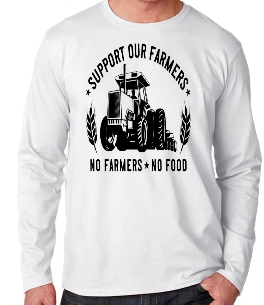Camiseta manga longa Infantil ou Adulto Agricultor trator colono fazendeiro