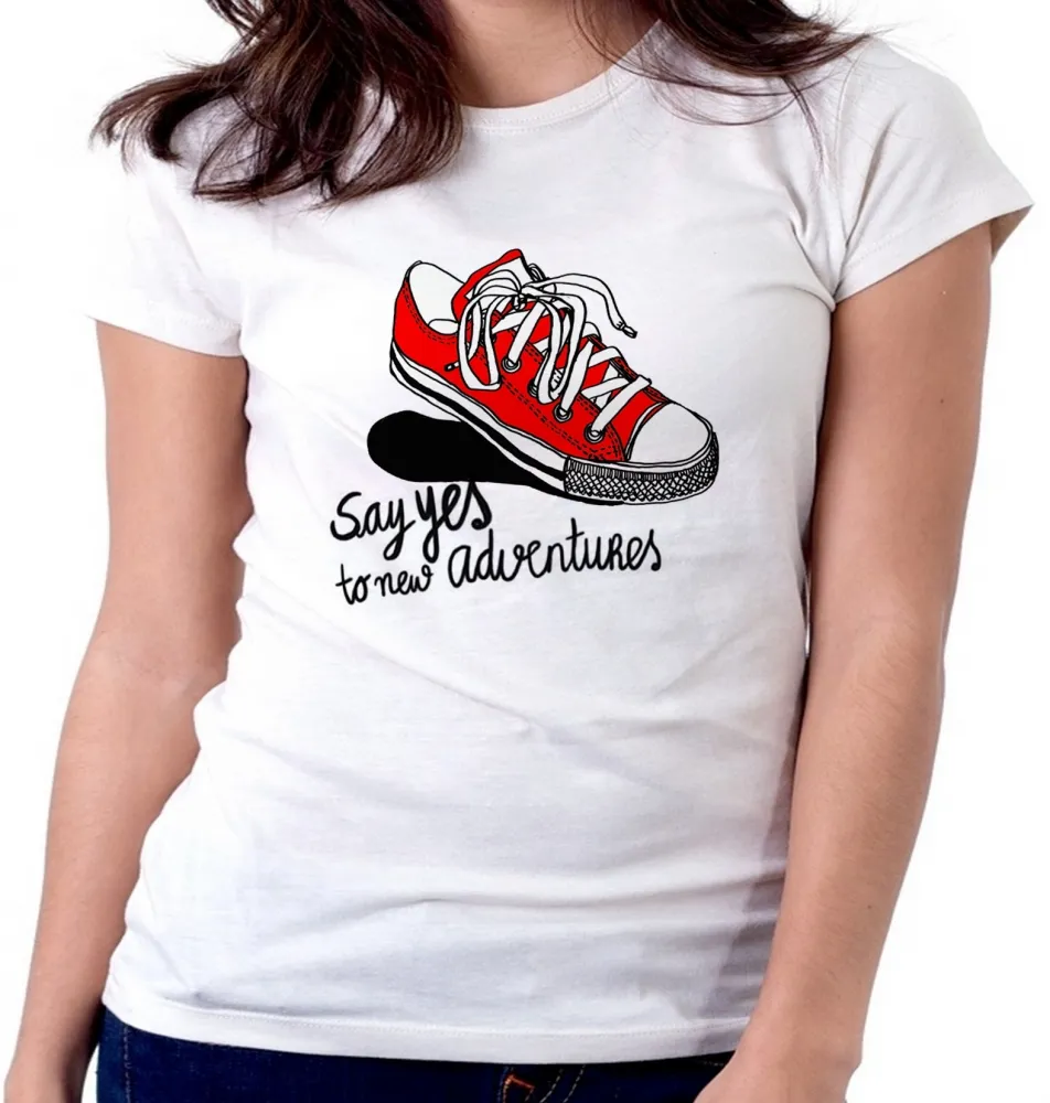 Baby look blusa feminina All Star tenis Say yes black Imagem
