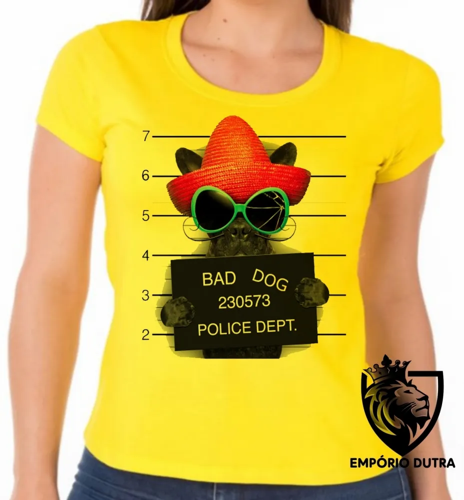 Baby look blusa feminina Bad Dog cachorro cão Police Dept Imagem