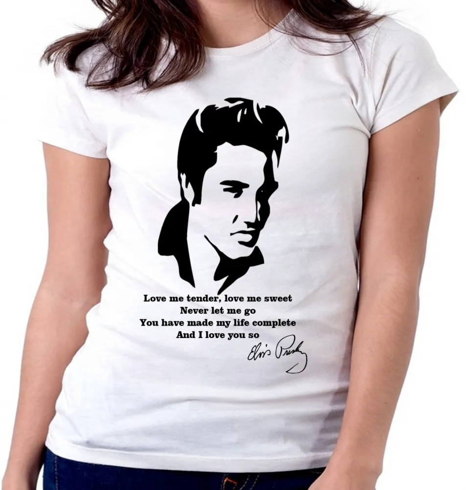 Baby look blusa Feminina banda Elvis Presley rei rock musica