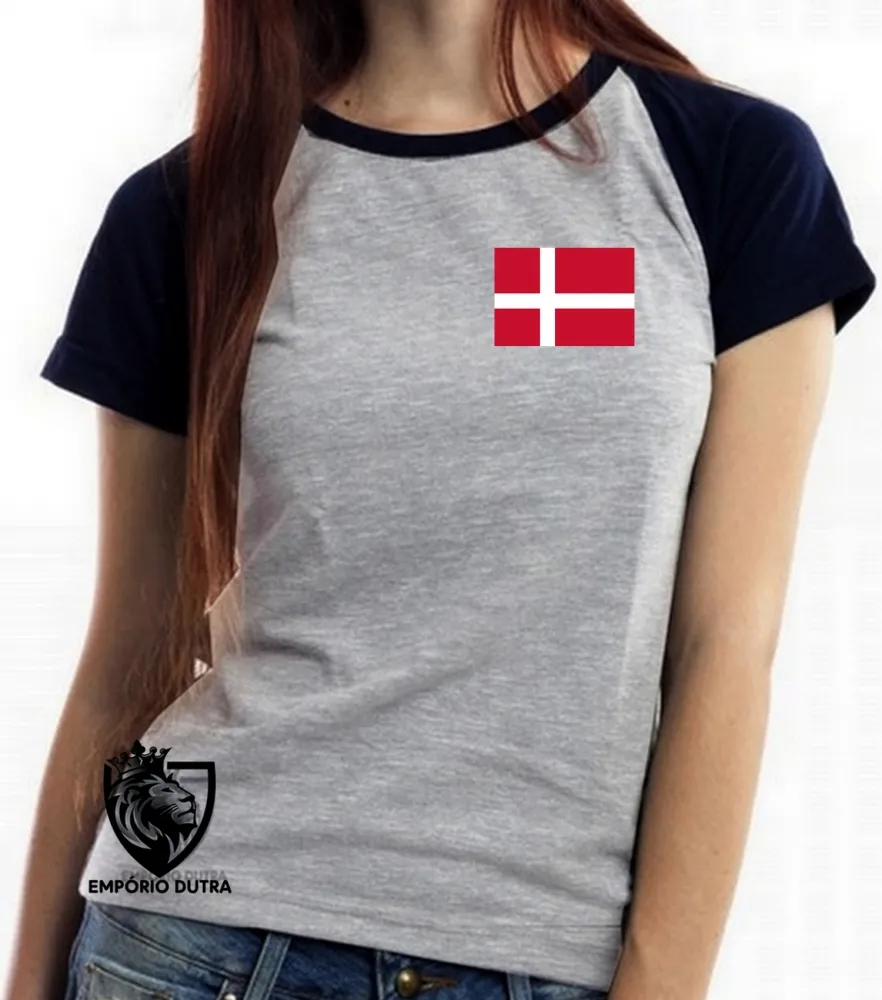 Baby look blusa Feminina bandeira Dinamarca europa