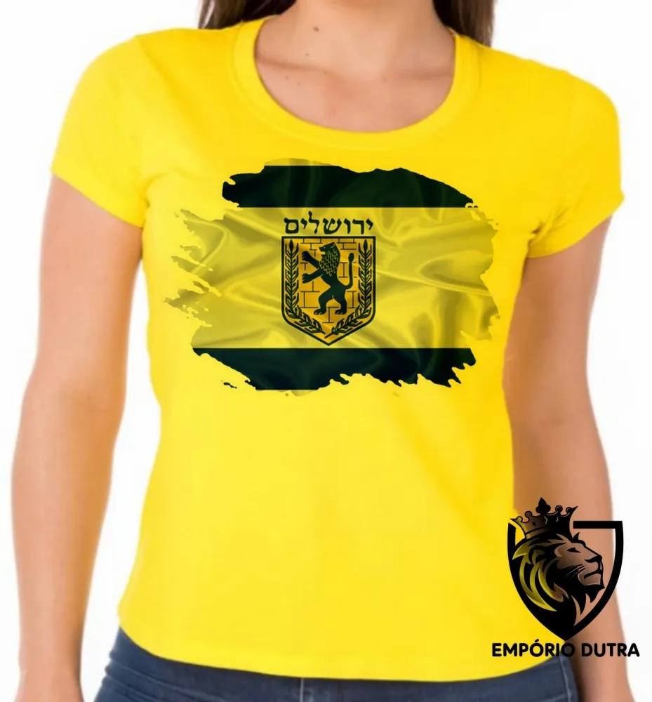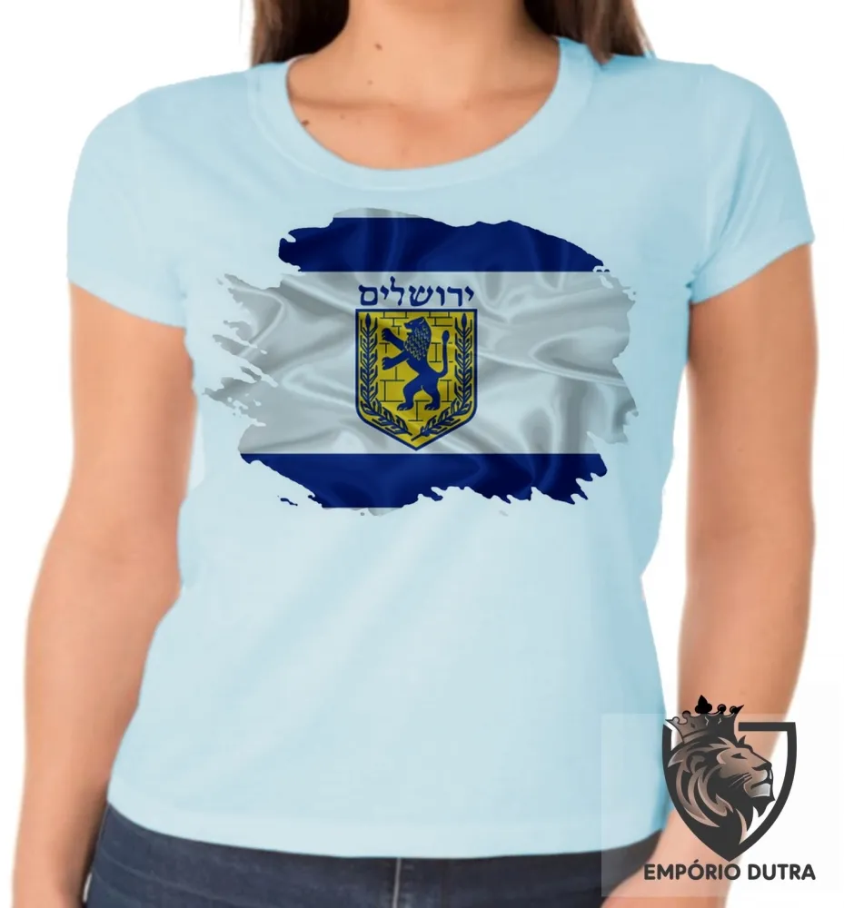 Baby look blusa Feminina bandeira jerusalem israel Imagem