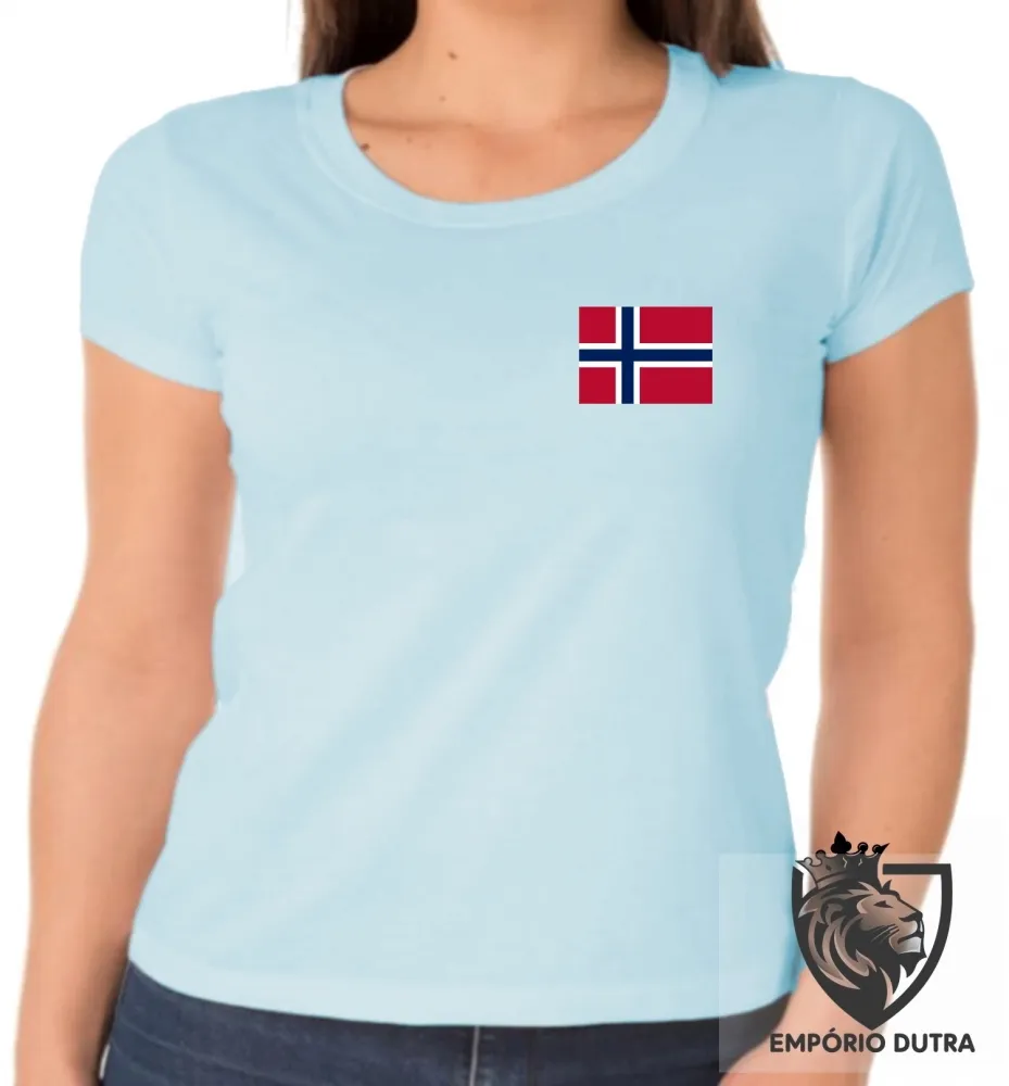 Baby look blusa Feminina bandeira Noruega escandinavo Imagem
