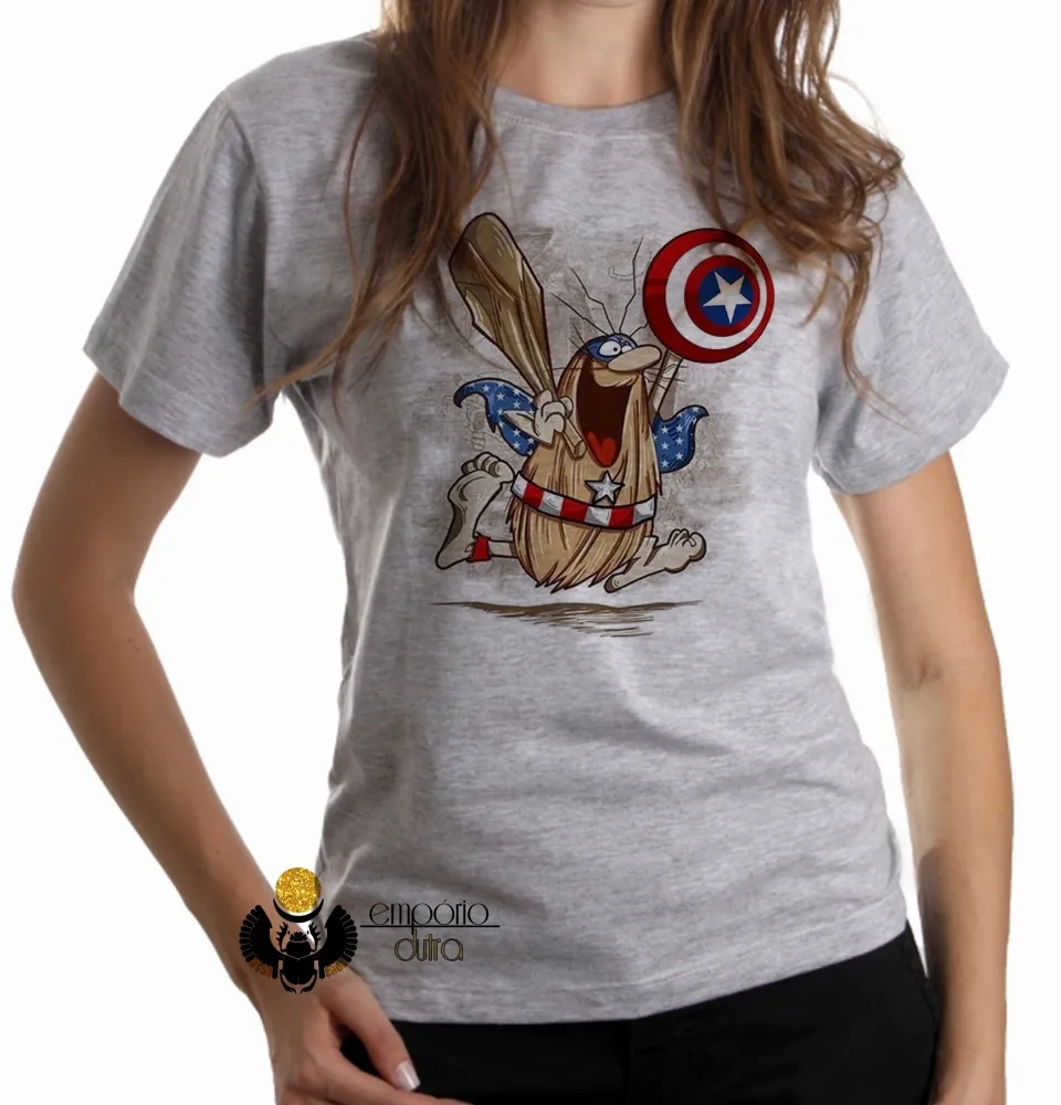 Baby look blusa feminina capitão caverna escudo america desenho antigo