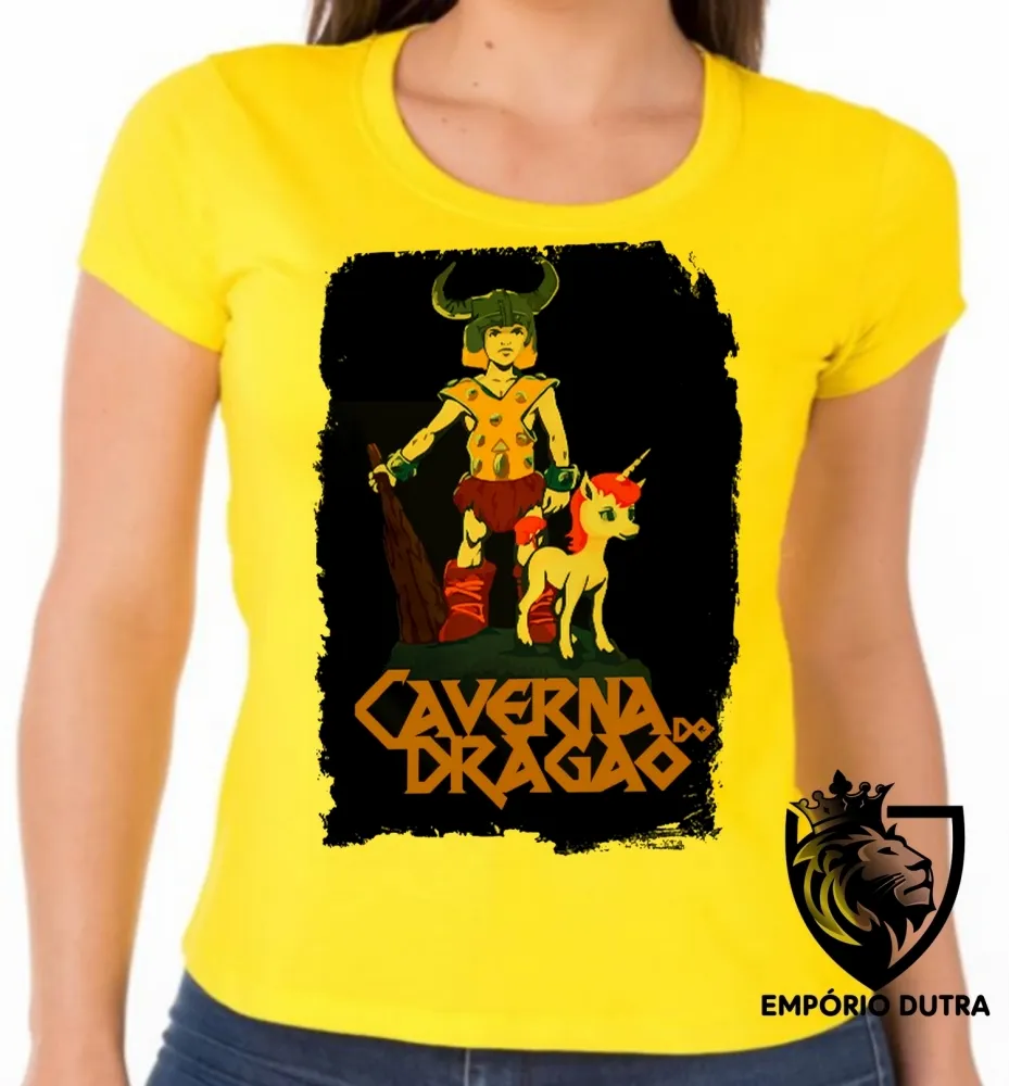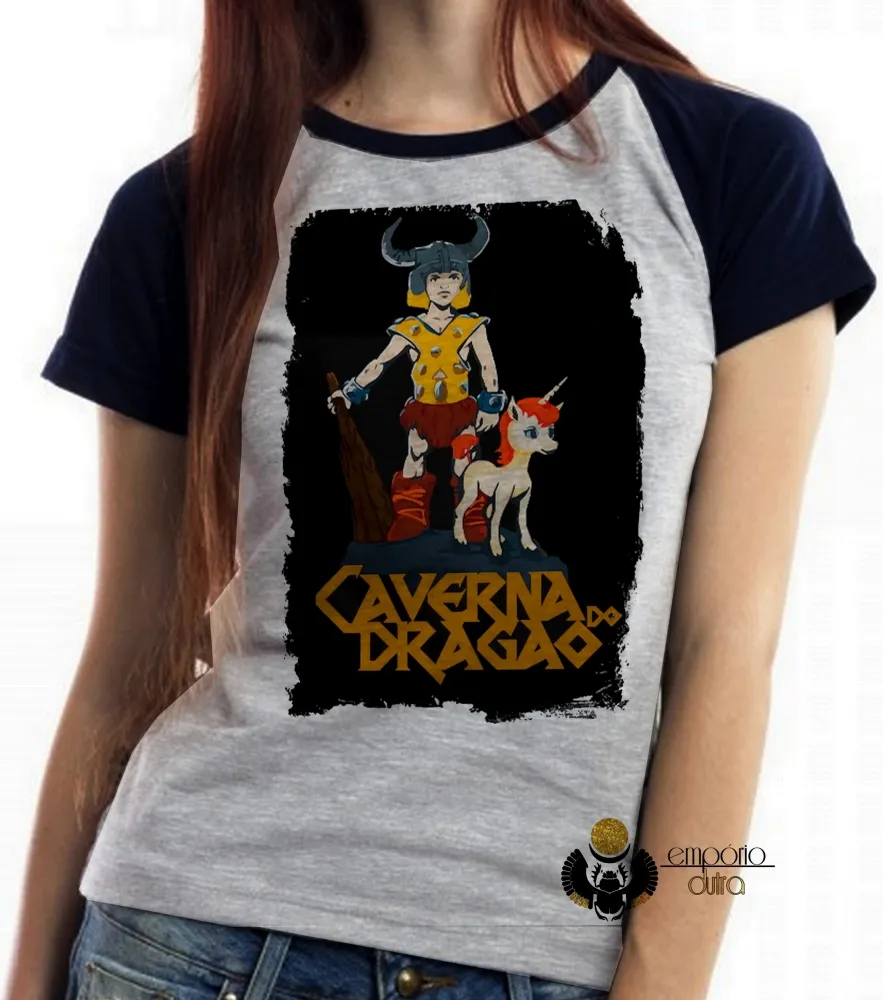 Baby look blusa feminina caverna do dragão dungeons dragons unicornio