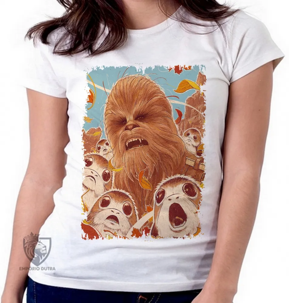 Baby look blusa Feminina Chewbacca Porgs Imagem