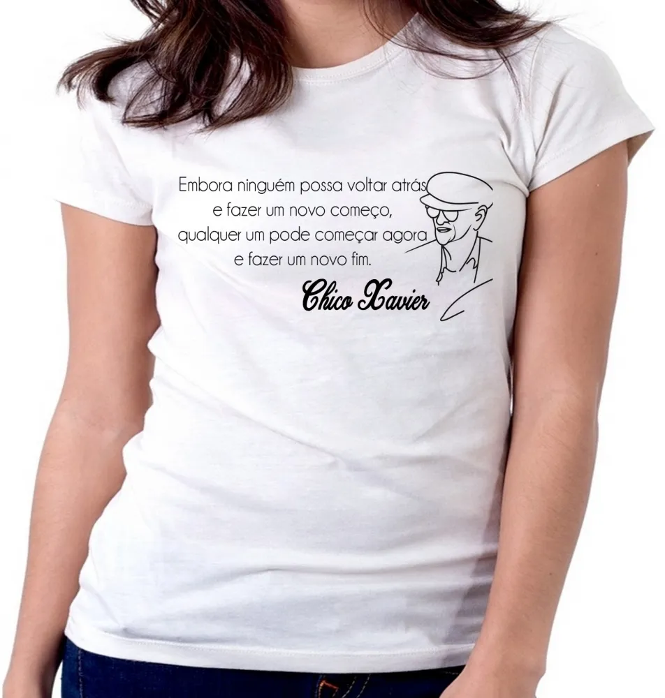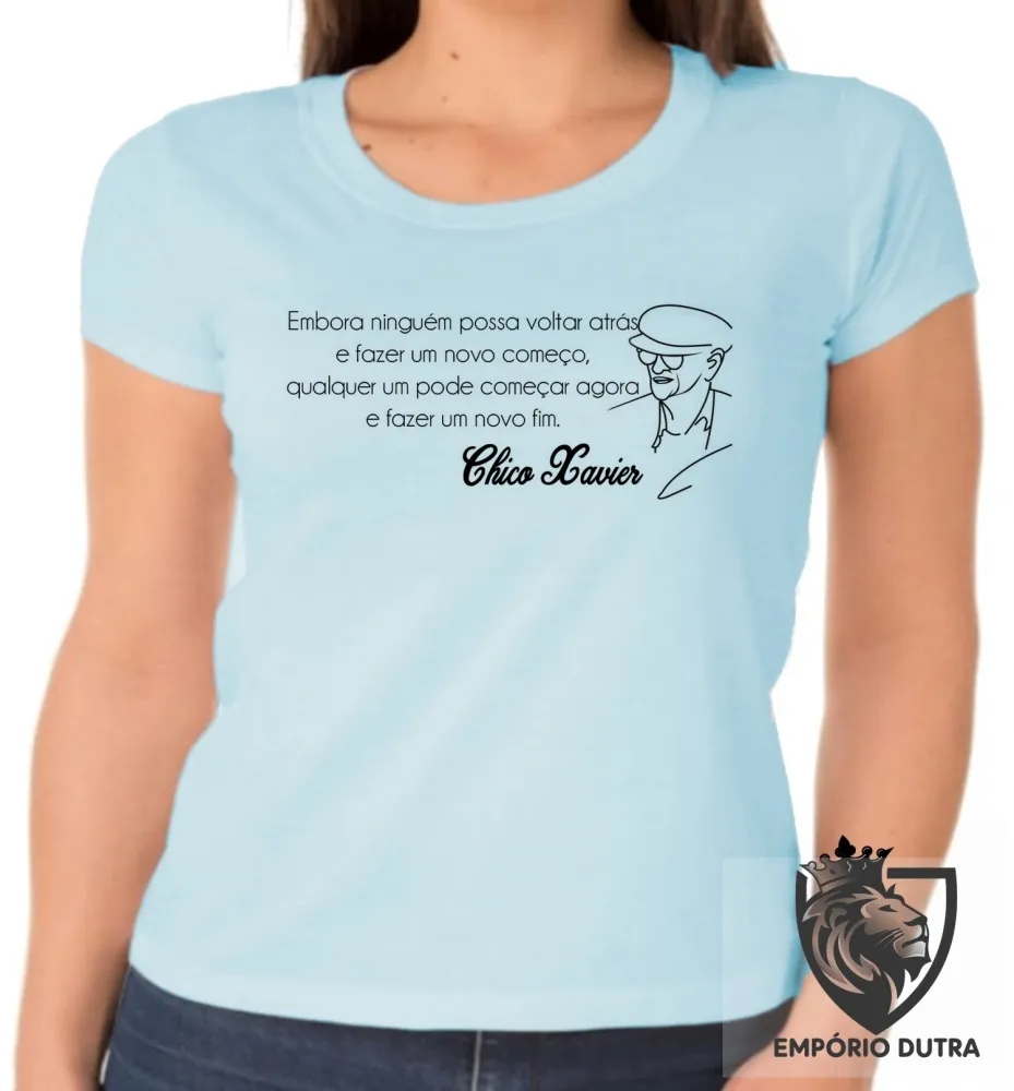 Baby look blusa Feminina Chico Xavier espirita Alan kardec
