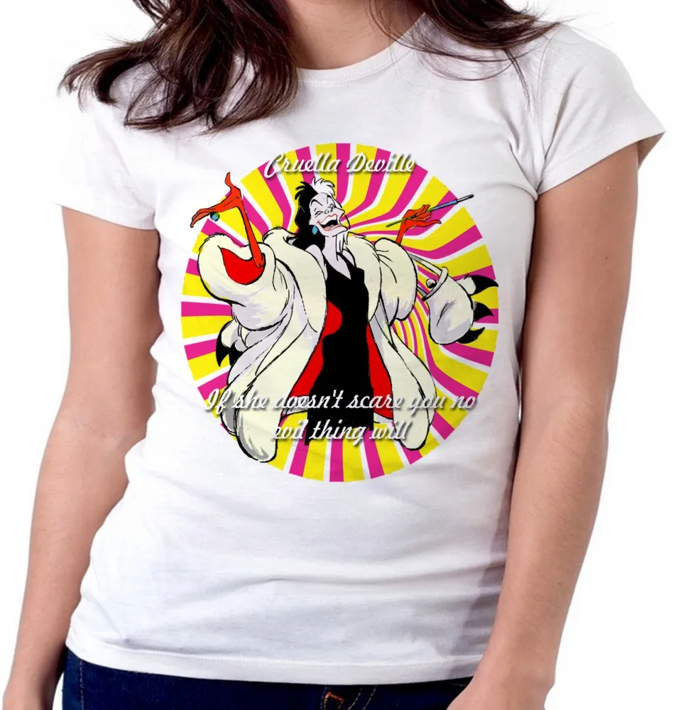 Baby look blusa Feminina Cruella Deville 101 dalmatas if she