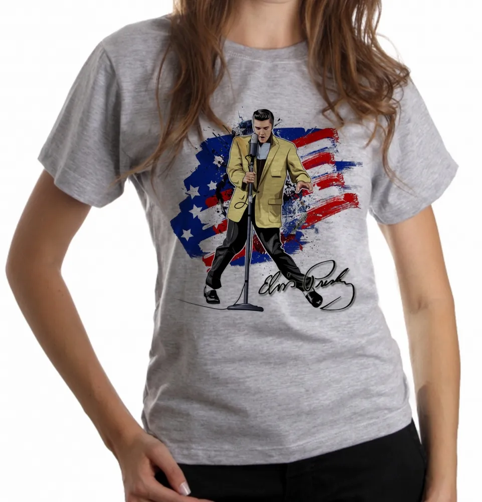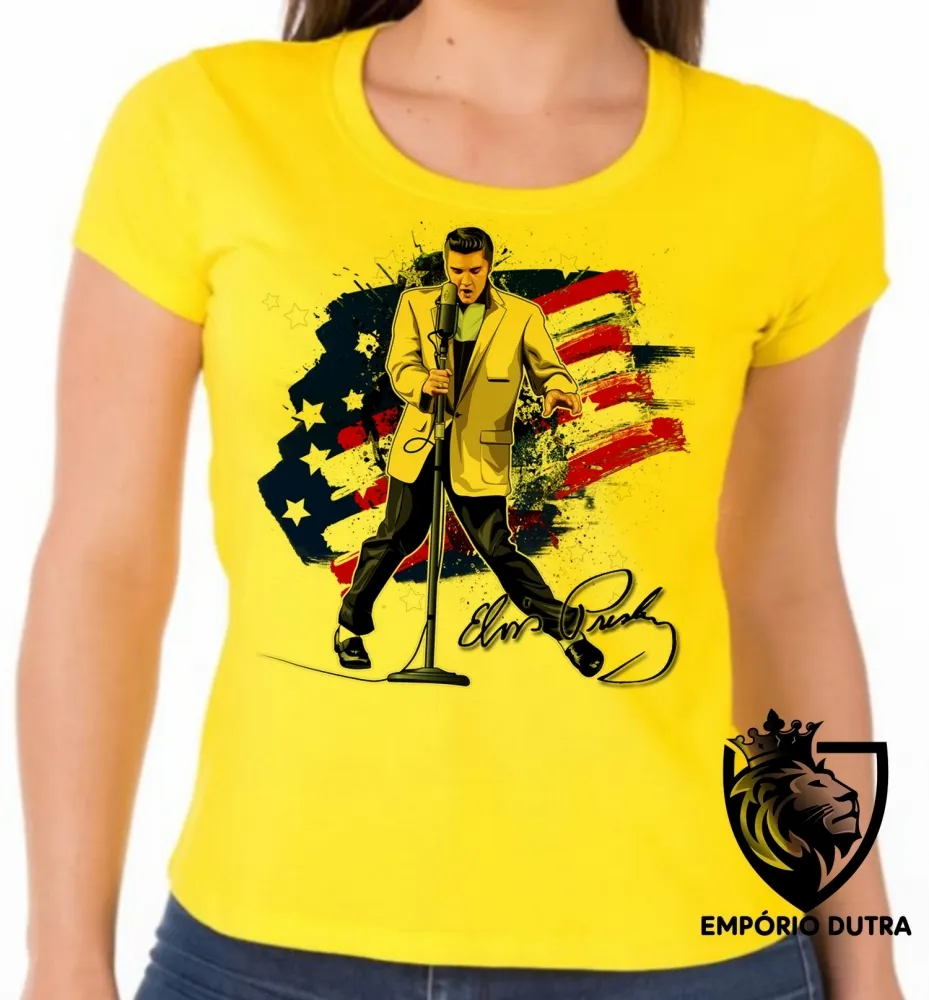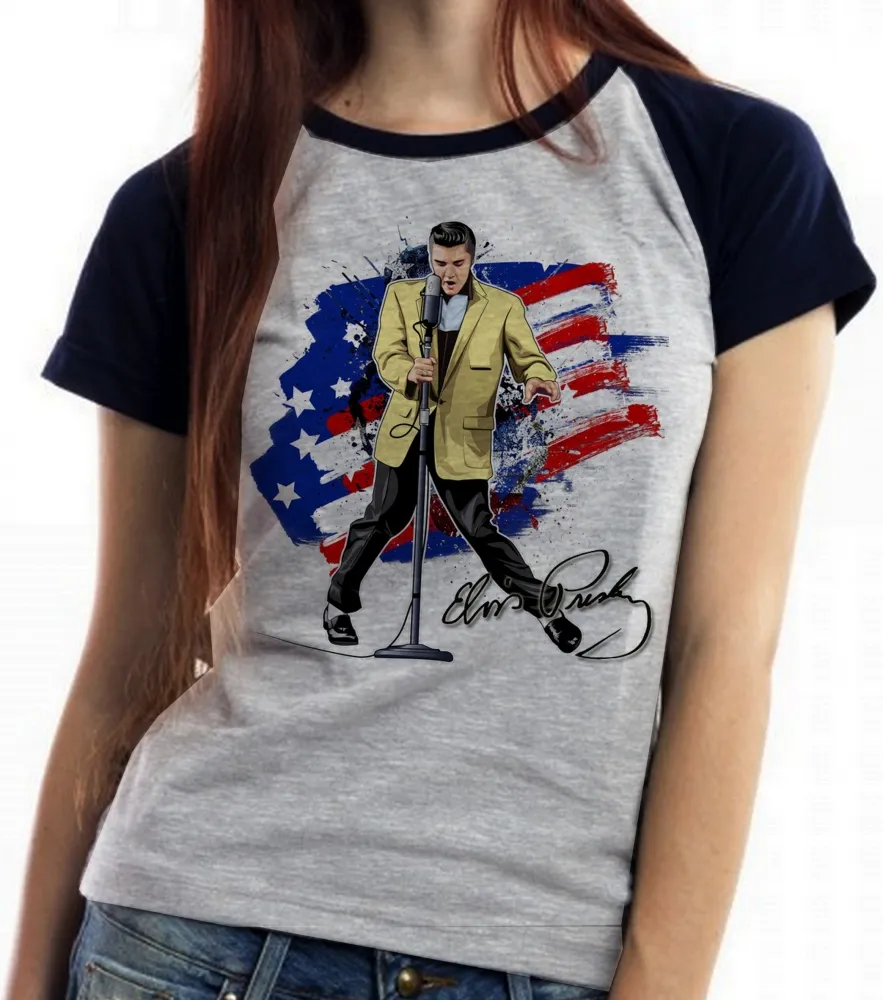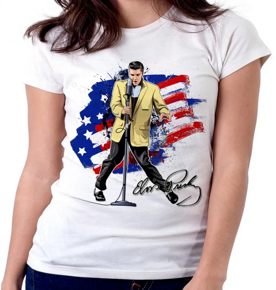 Baby look blusa Feminina Elvis Presley bandeira EUA musica rock