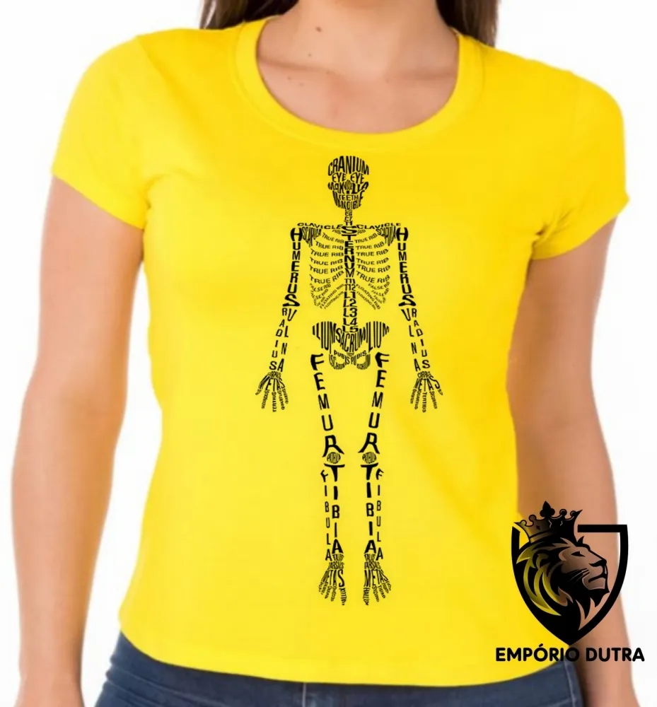 Baby look blusa feminina esqueleto humano com nome Imagem