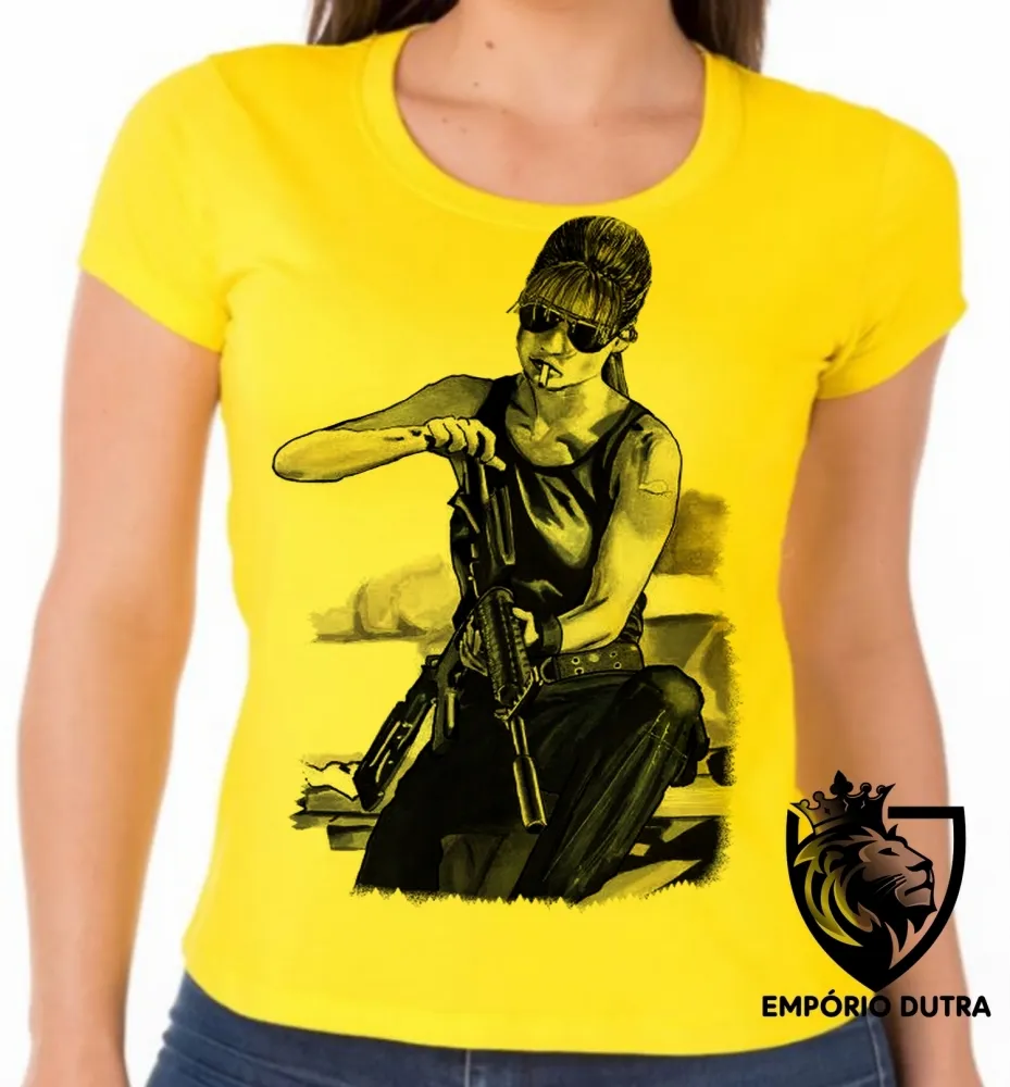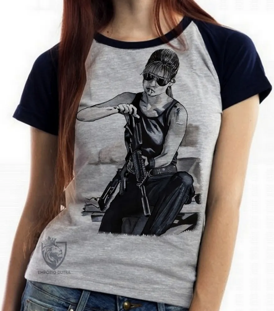 Baby look blusa Feminina exterminador do futuro terminator Sarah Connor