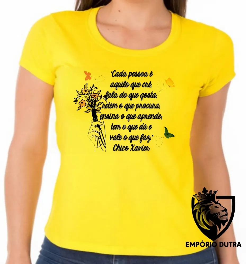 Baby look blusa Feminina Frase Chico Xavier espirita cada pessoa