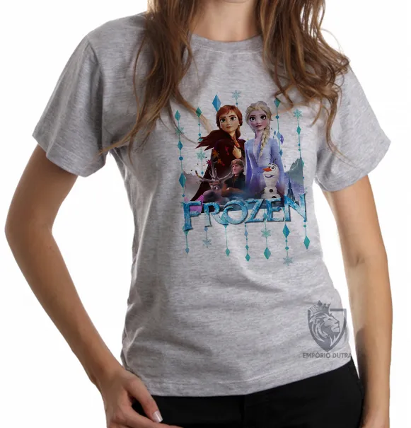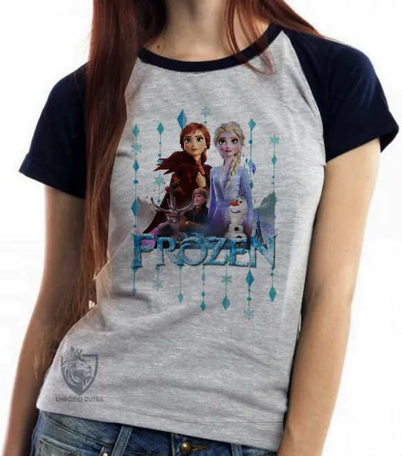 Baby look blusa feminina Frozen Anna e Elsa