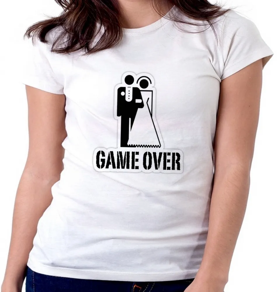 Baby look blusa feminina game over casamento jogo engraçada Imagem