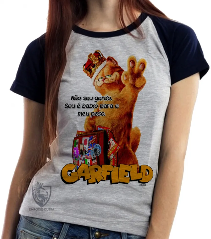 Baby look blusa feminina Garfield não sou gordo gato Imagem
