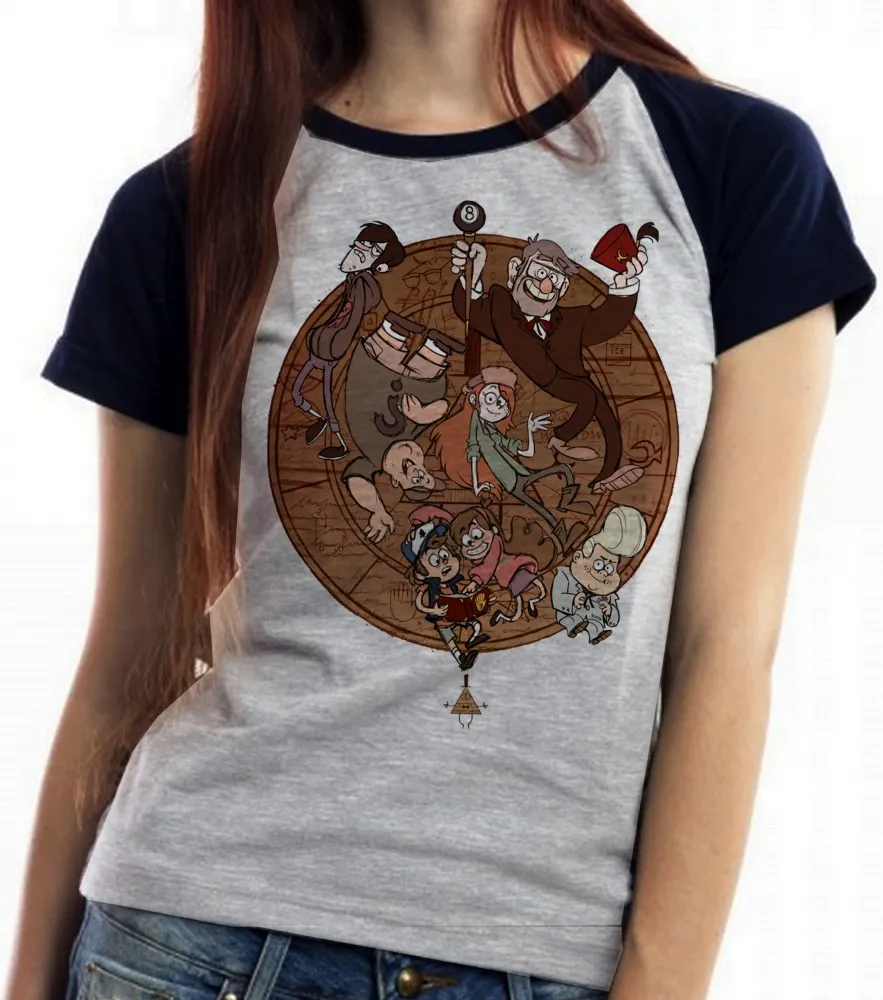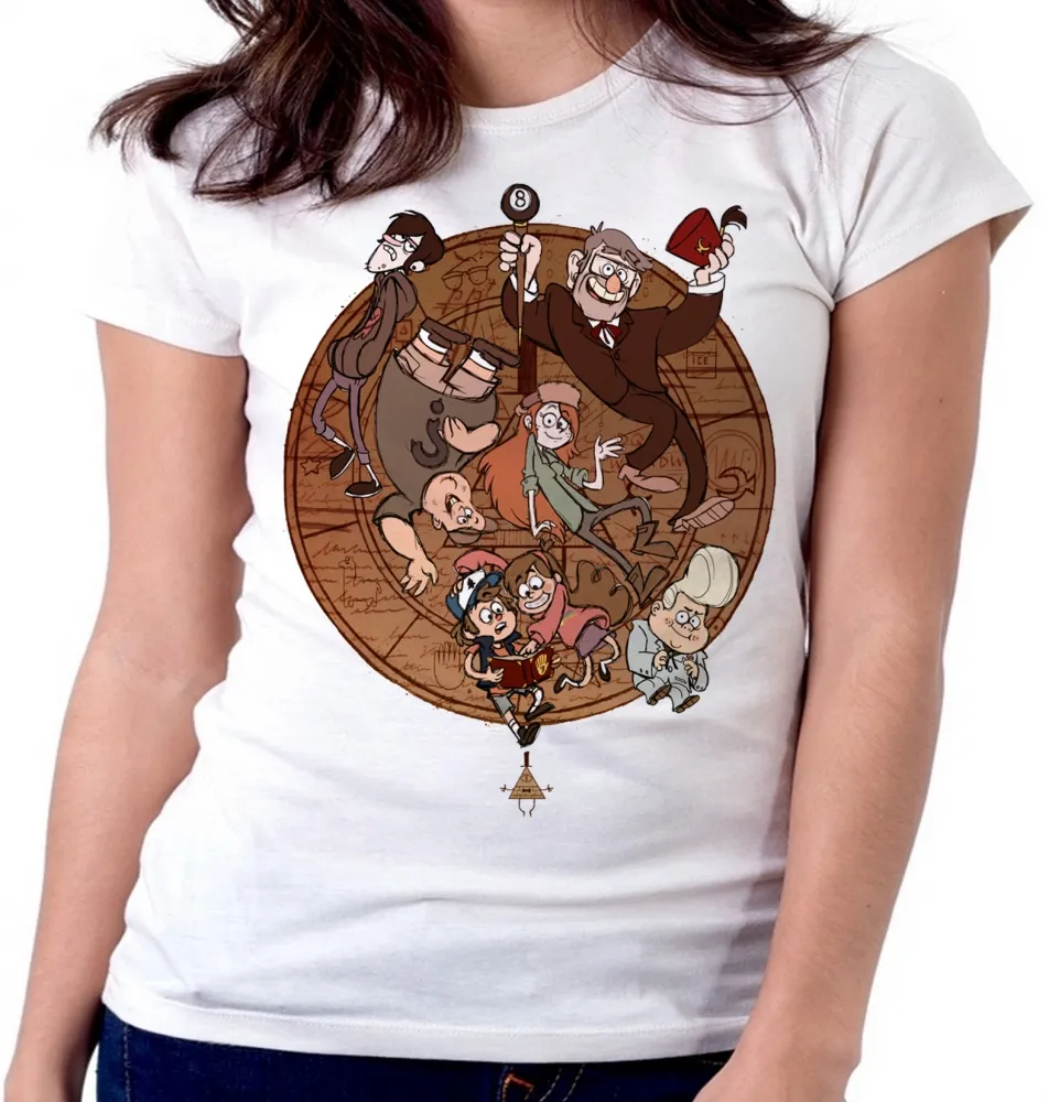 Baby look blusa feminina Gravity Falls círculo todos Imagem