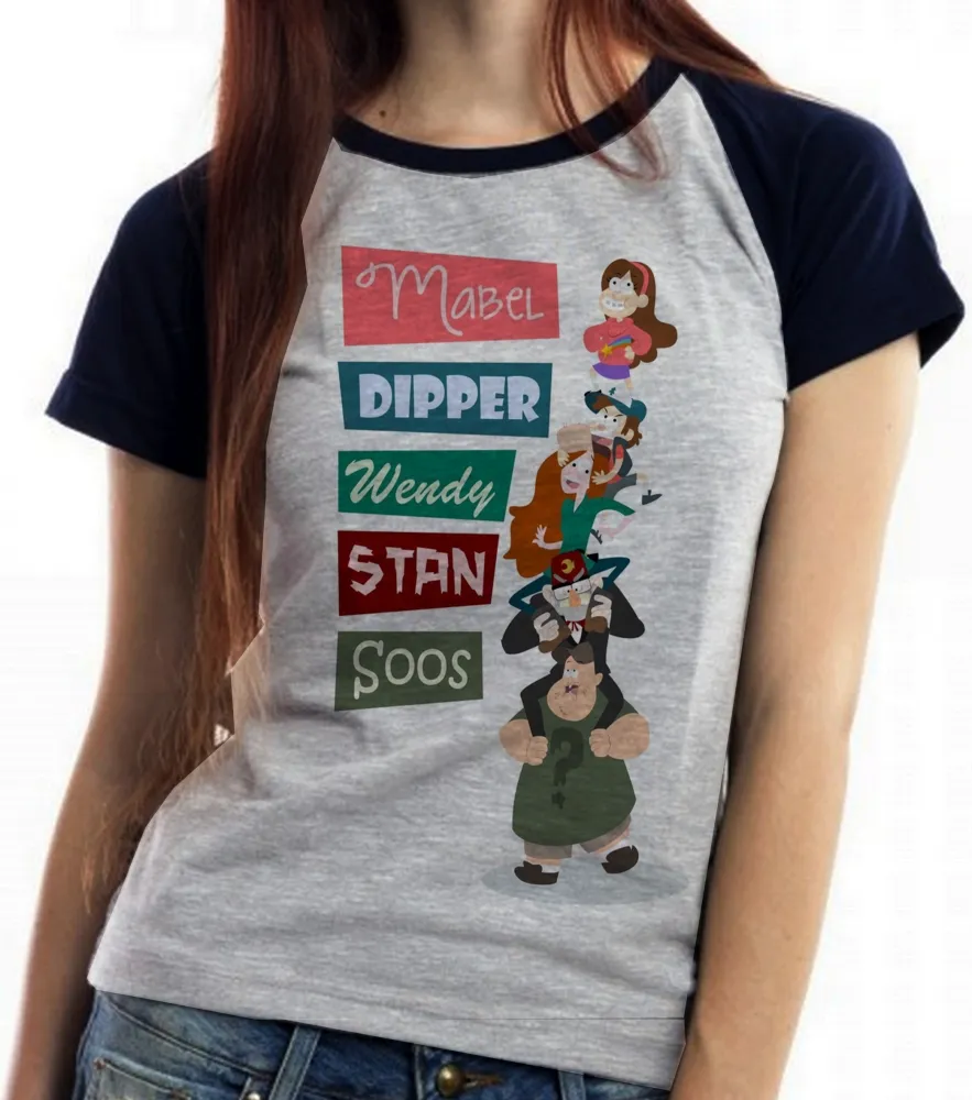 Baby look blusa feminina Gravity Falls nomes pilha Imagem