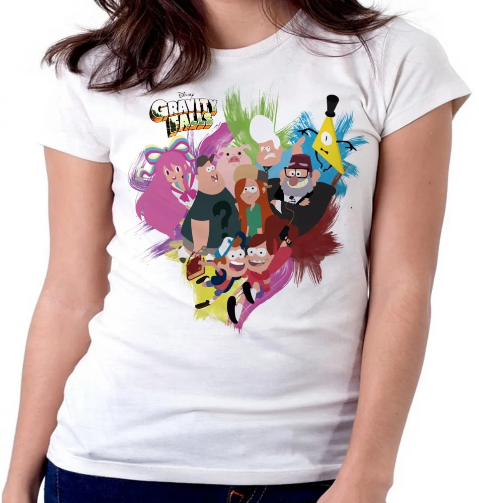 Baby look blusa feminina Gravity Falls todos personagens Imagem