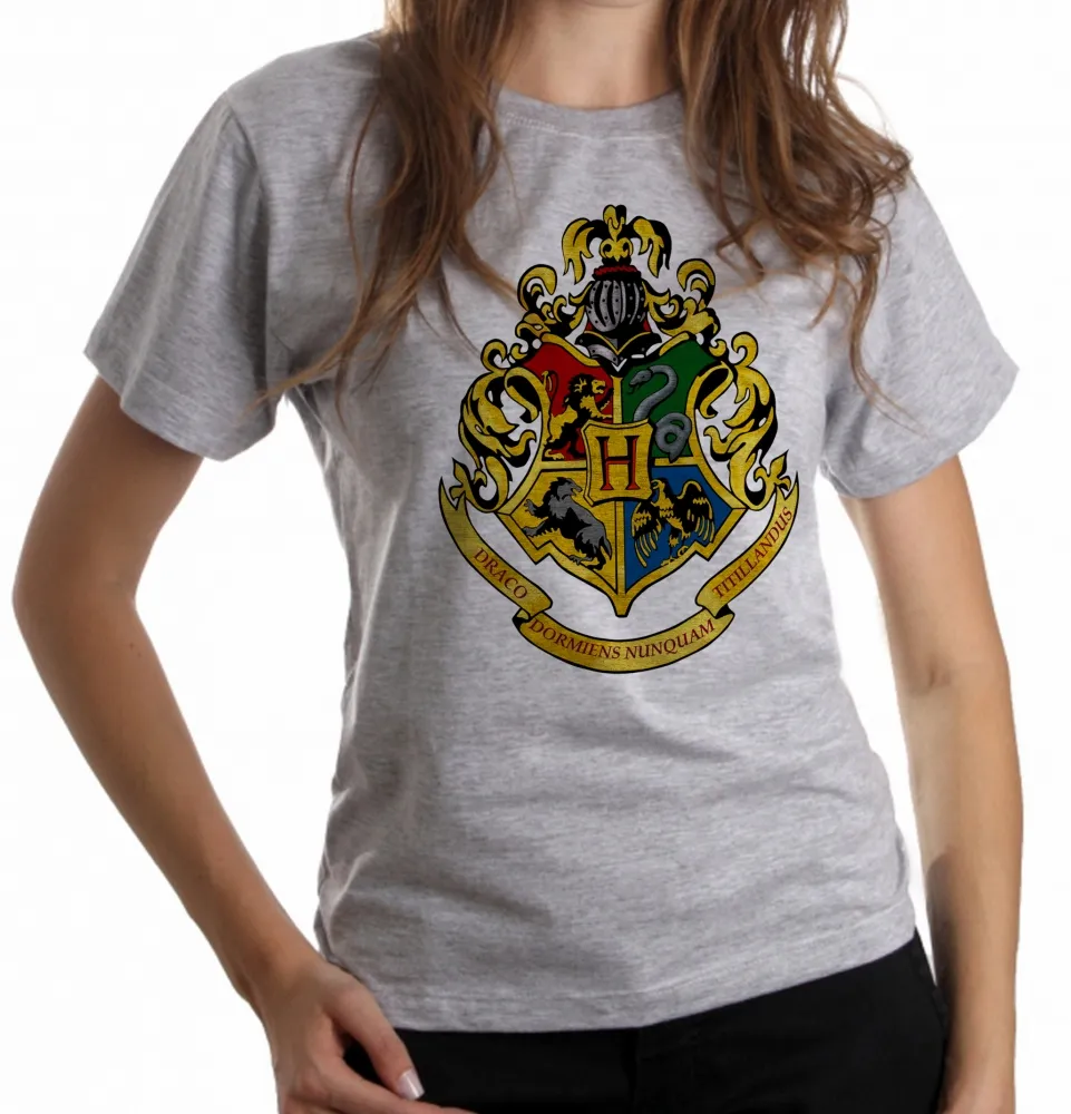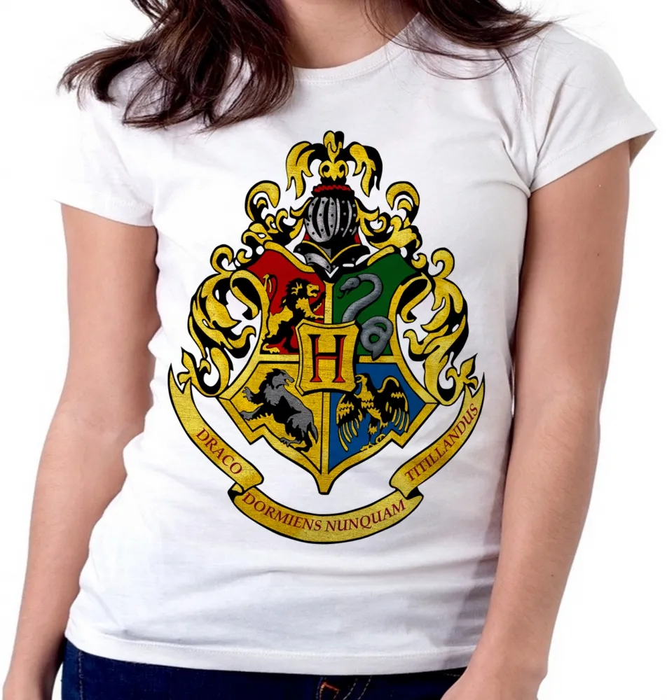 Baby look blusa Feminina Hogwarts harry potter símbolo colorido