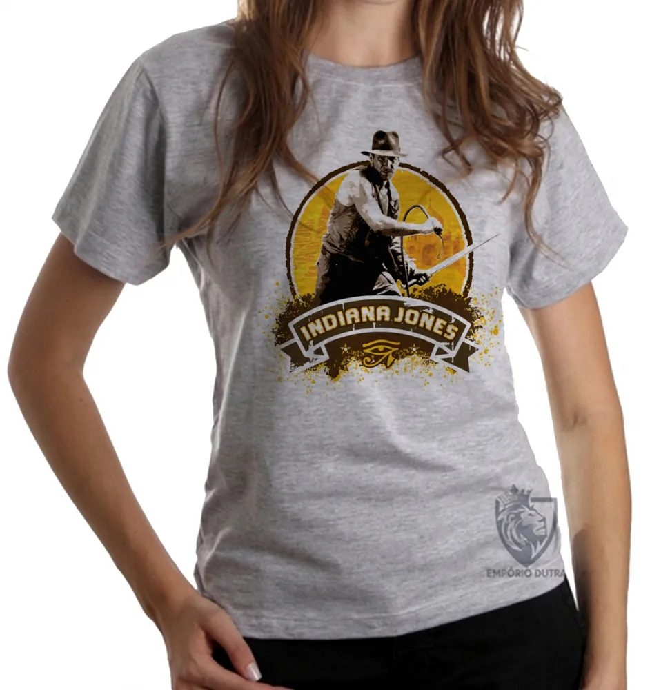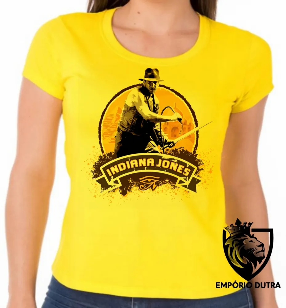 Baby look blusa Feminina Indiana Jones amarelo Imagem