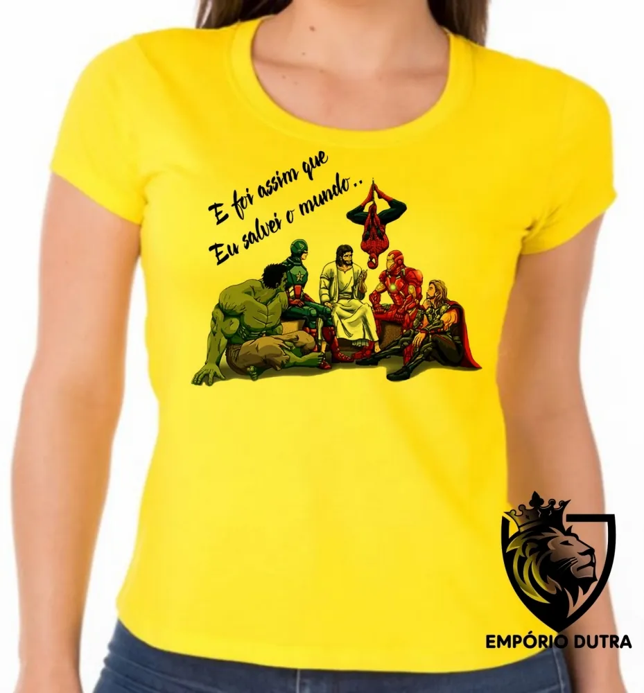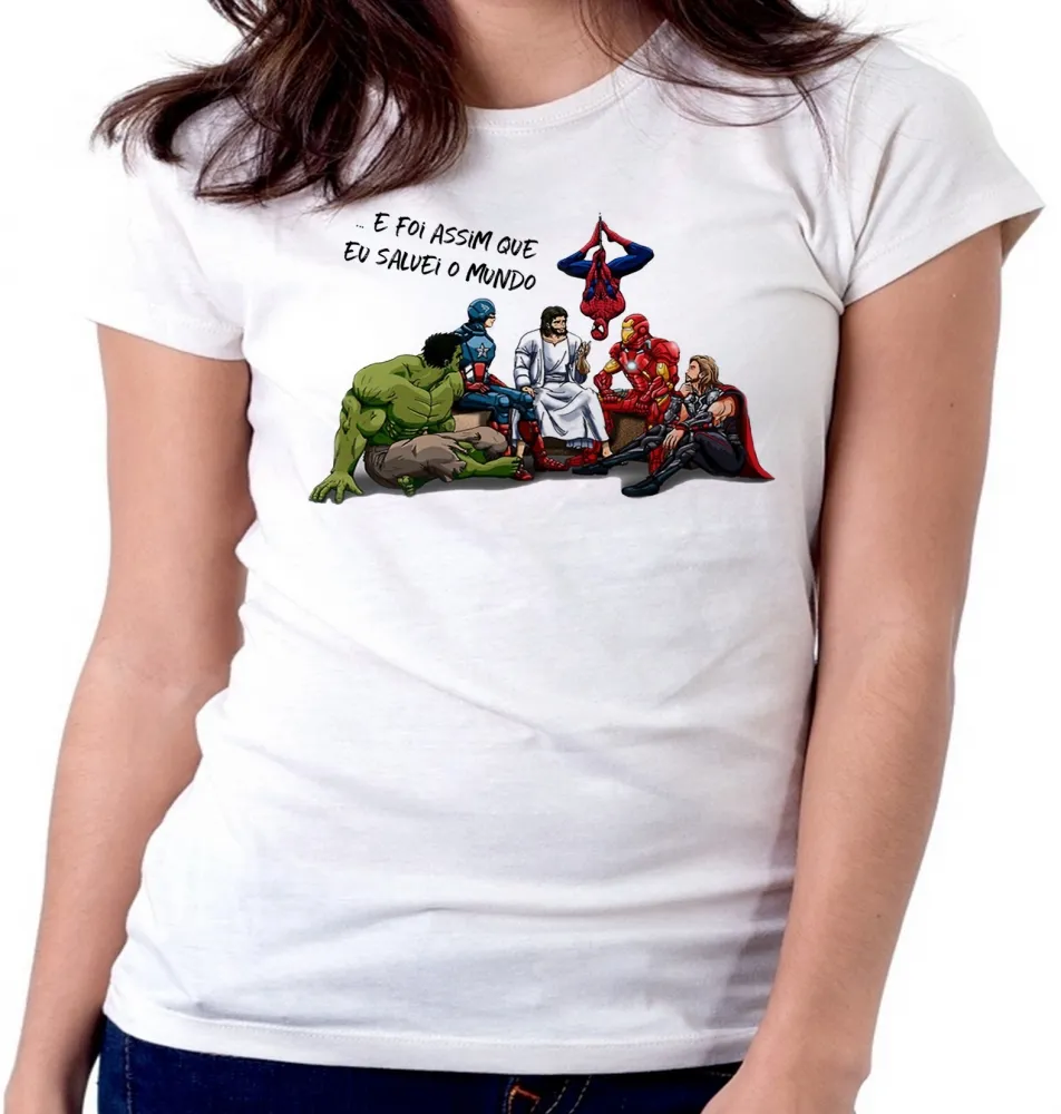 Baby look blusa Feminina Jesus foi assim que eu salvei o mundo vingadores