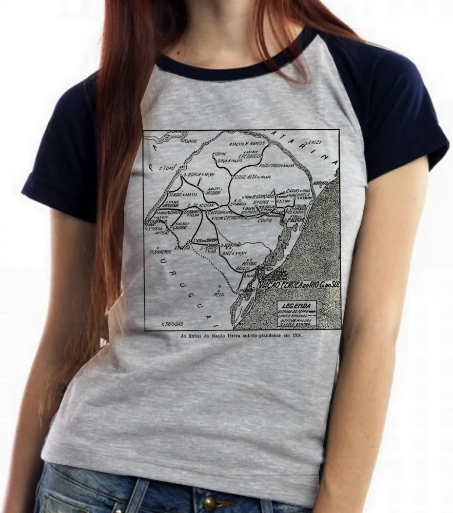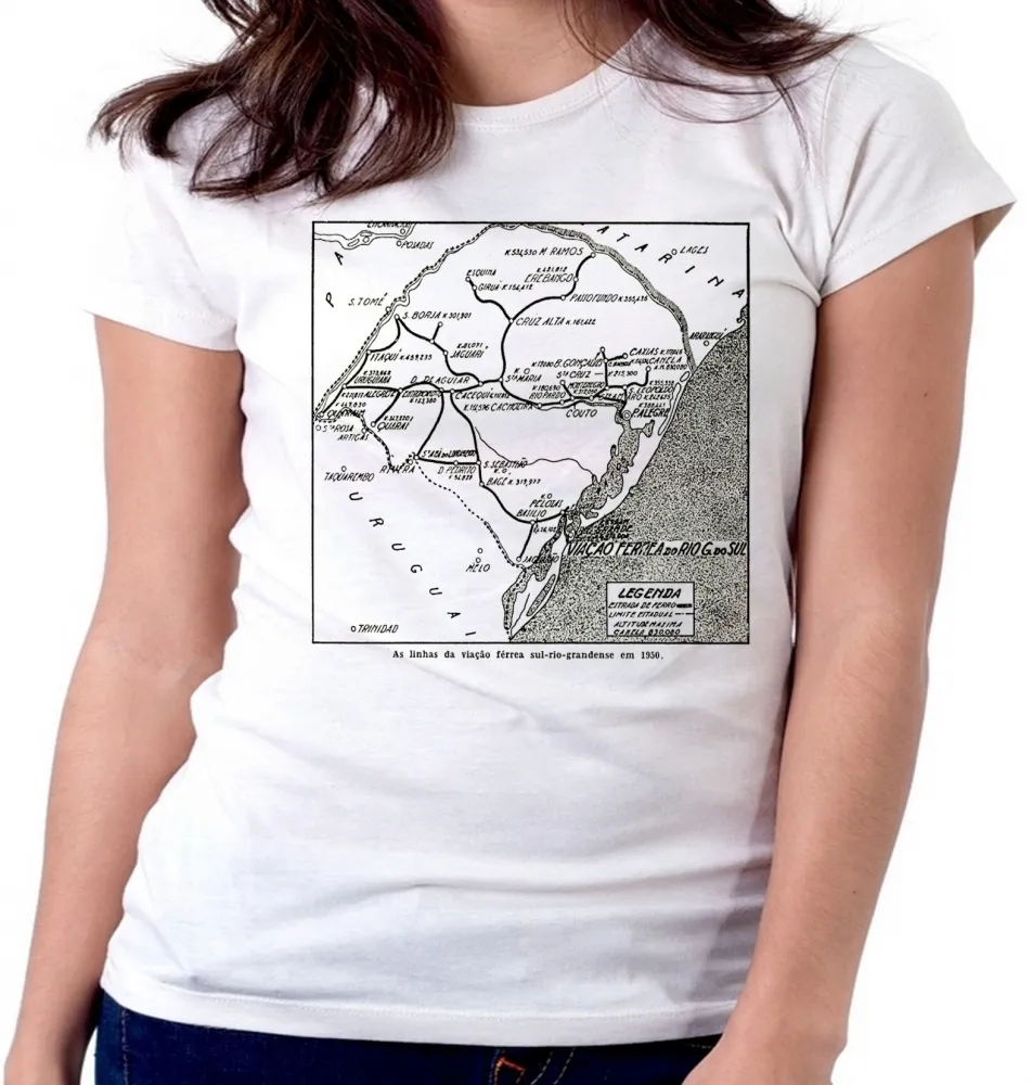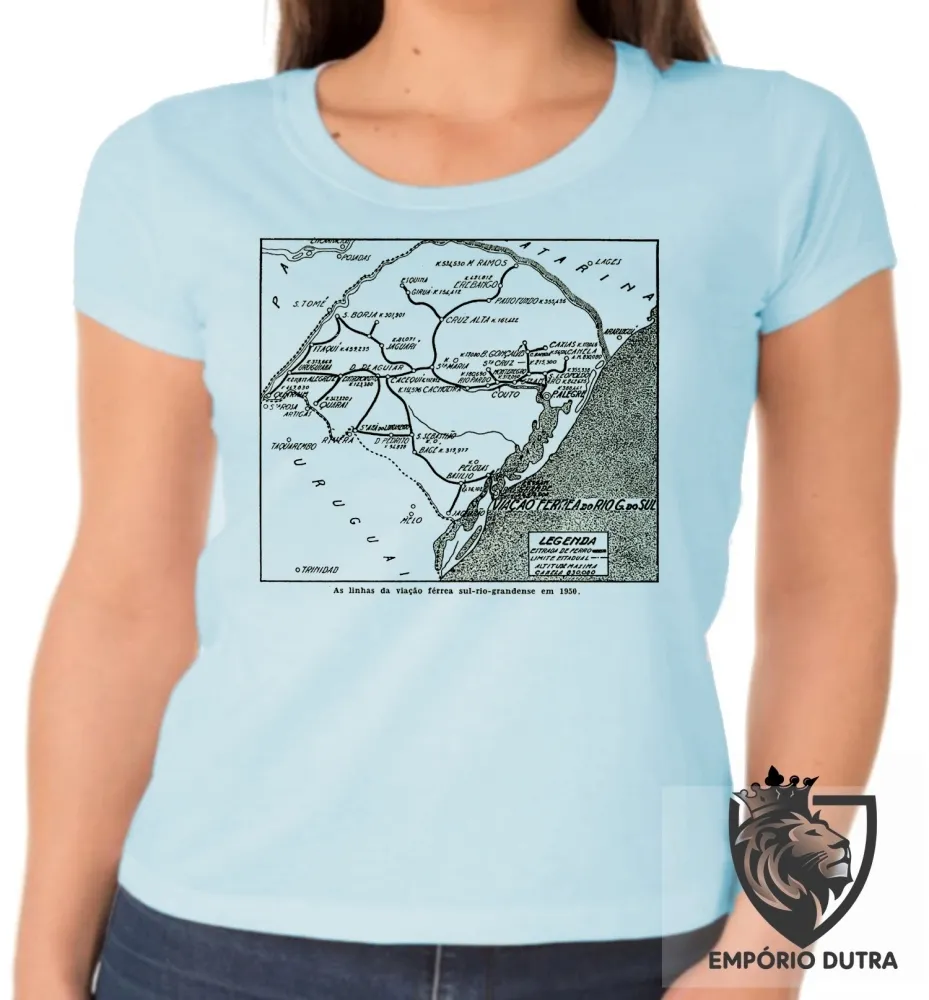 Baby look blusa feminina Linhas férreas Rio Grande do Sul antigo trem