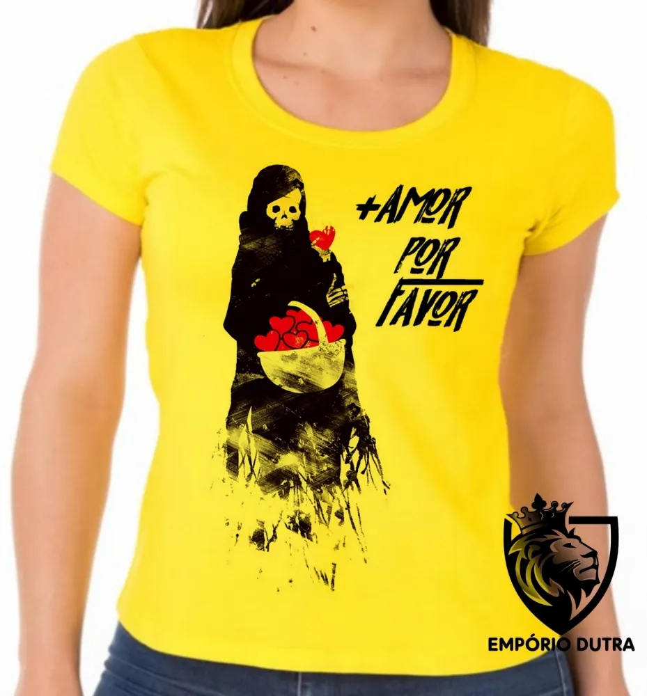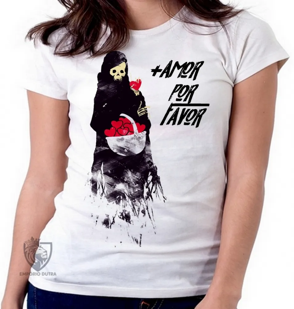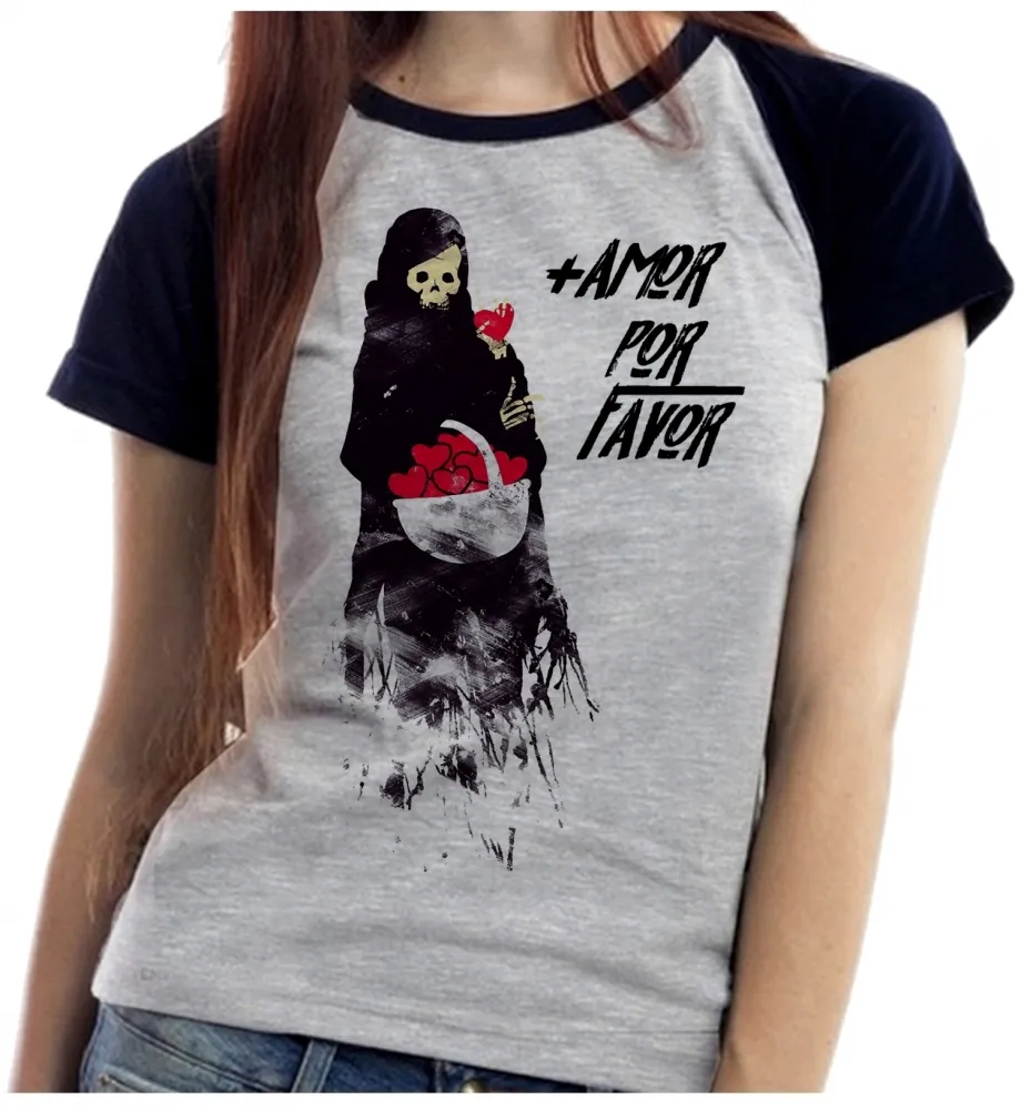 Baby look blusa feminina mais amor por favor caveira morte Imagem