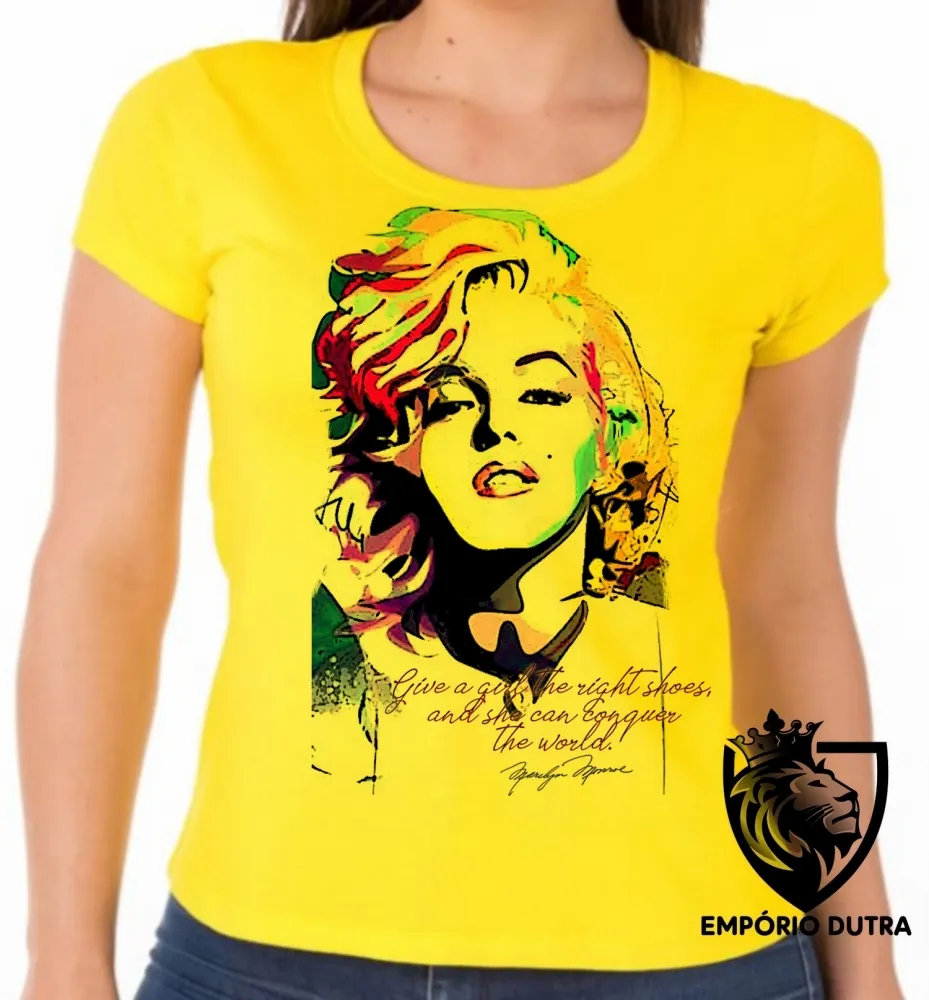 Baby look blusa feminina Marilyn Monroe frase sapatos mundo