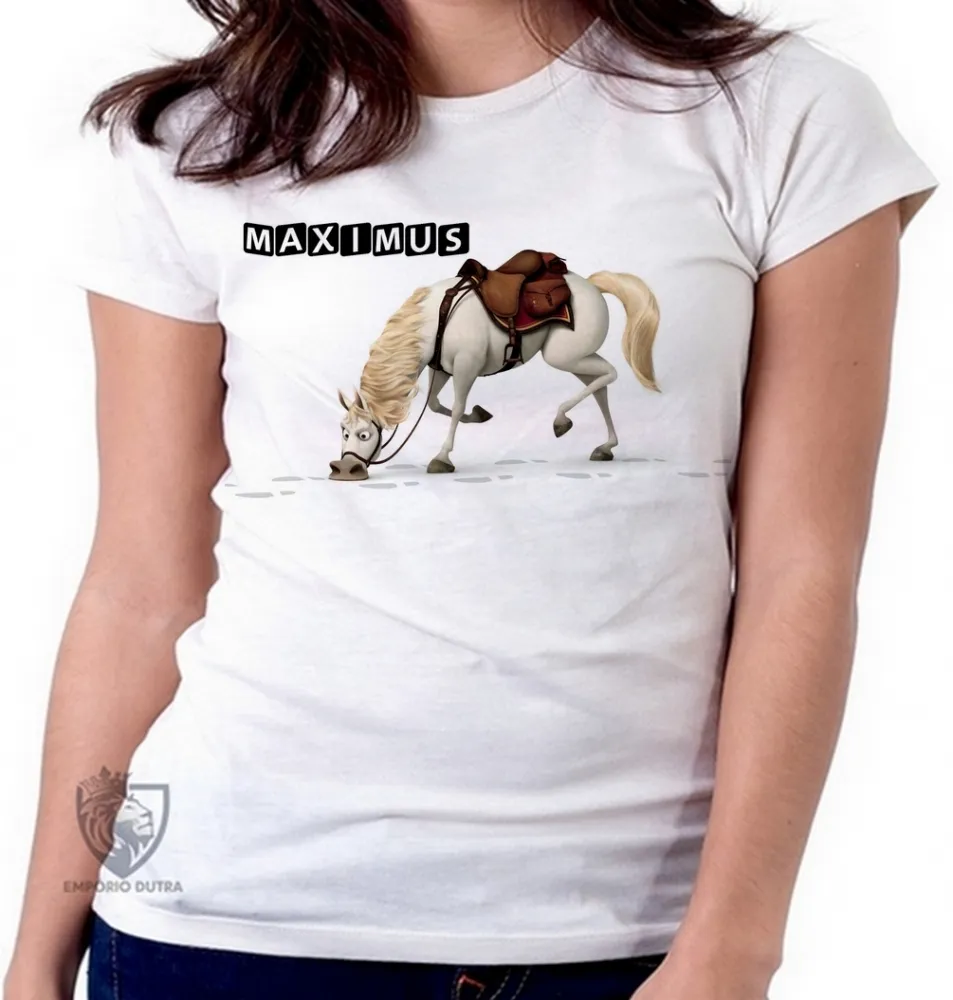 Baby look blusa feminina Maximus farejando cavalo rapunzel Imagem