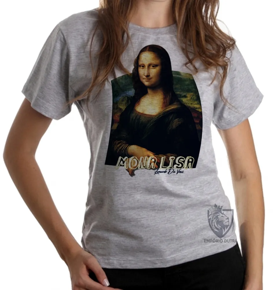 Baby look blusa feminina Mona Lisa Leonardo Da Vinci