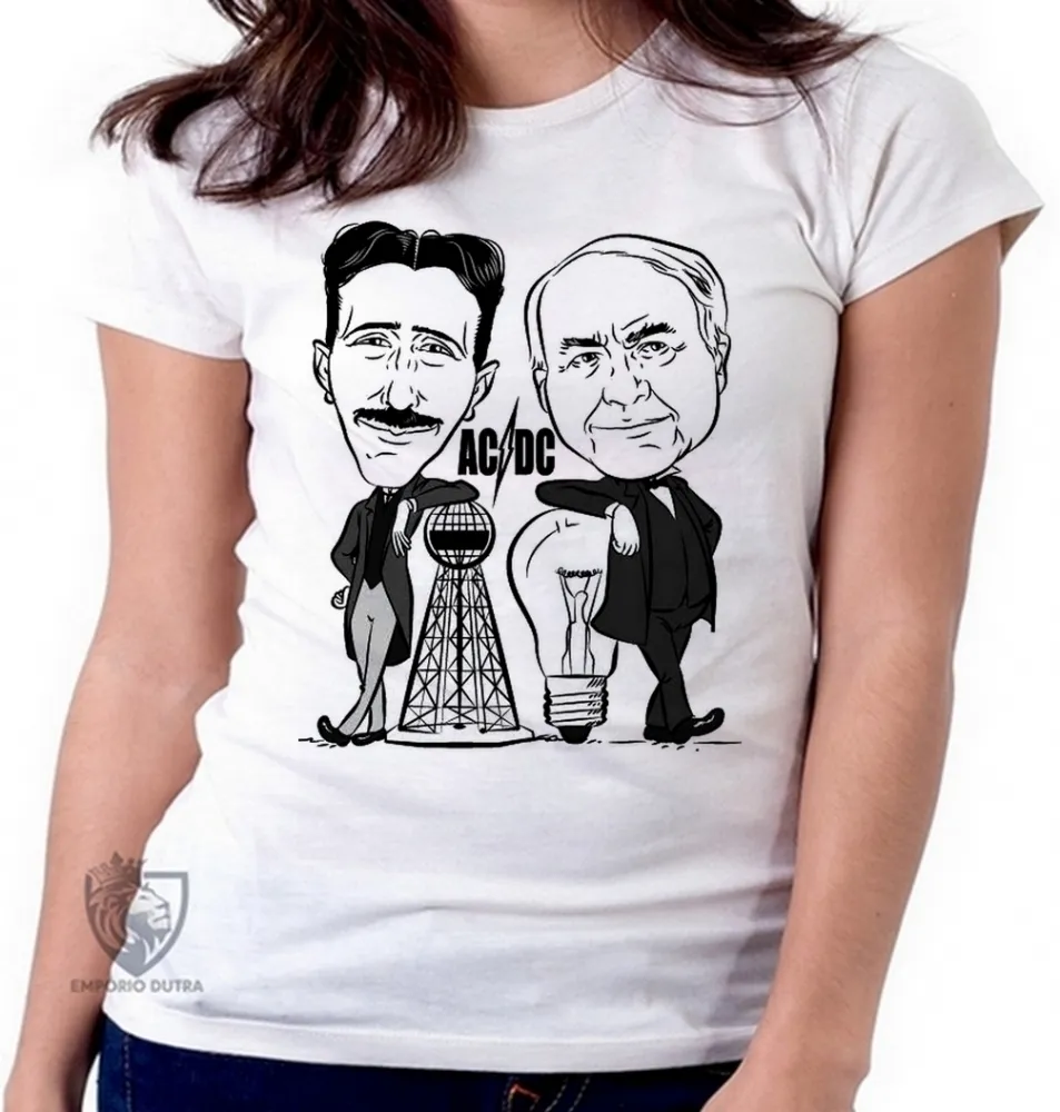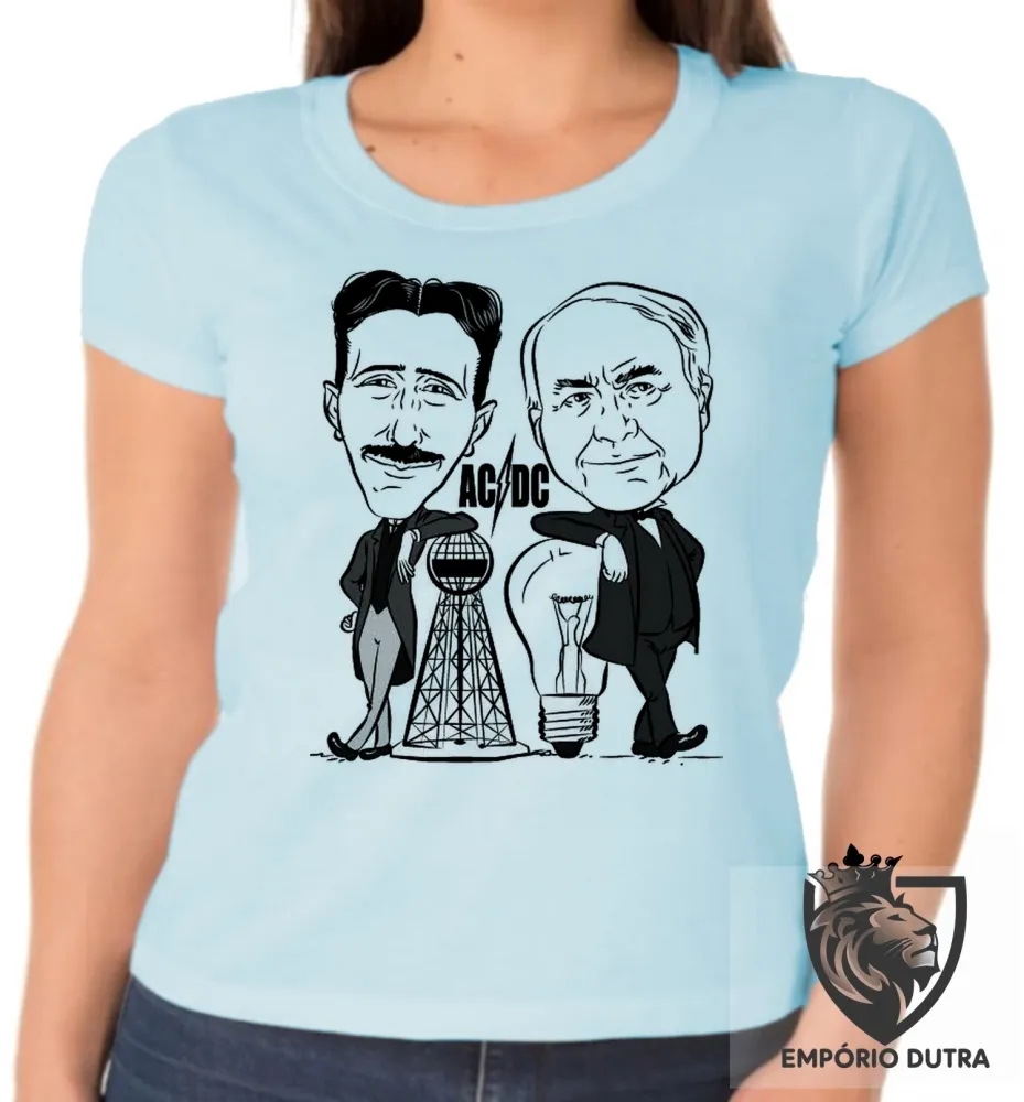 Baby look blusa feminina nikola tesla Thomas Edson eletrica