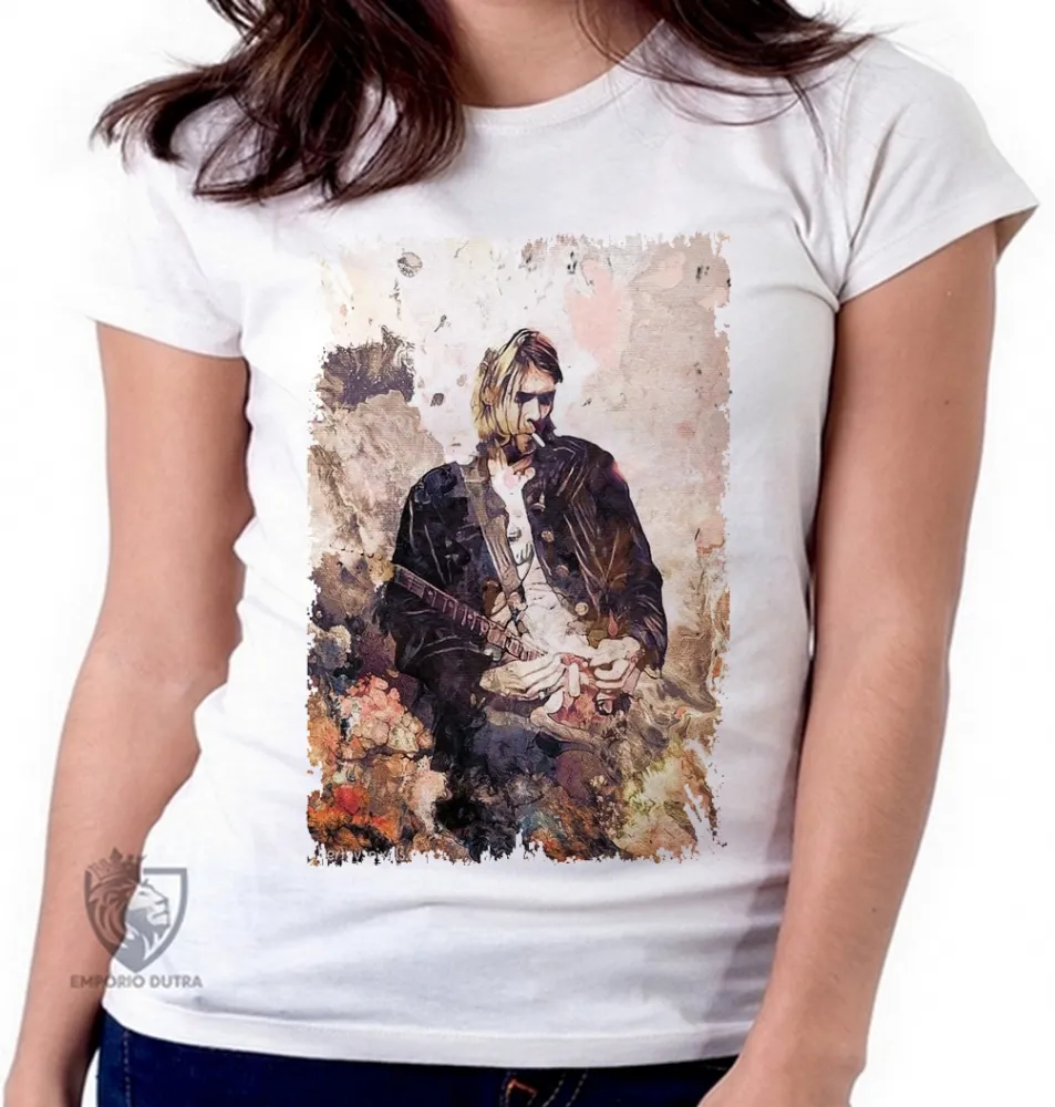 Baby look blusa Feminina Nirvana Kurt Cobain cigarro