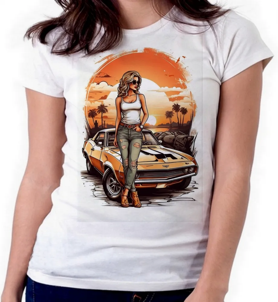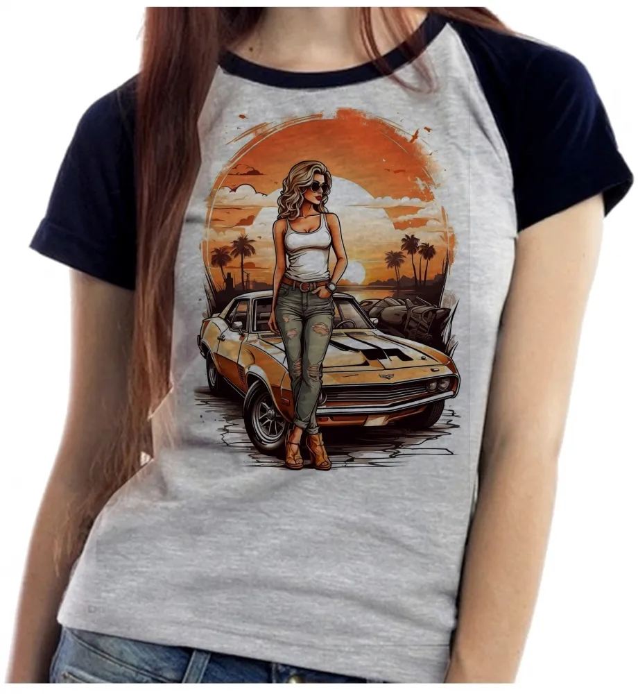 Baby look blusa feminina ou Camiseta Carro antigo corvete