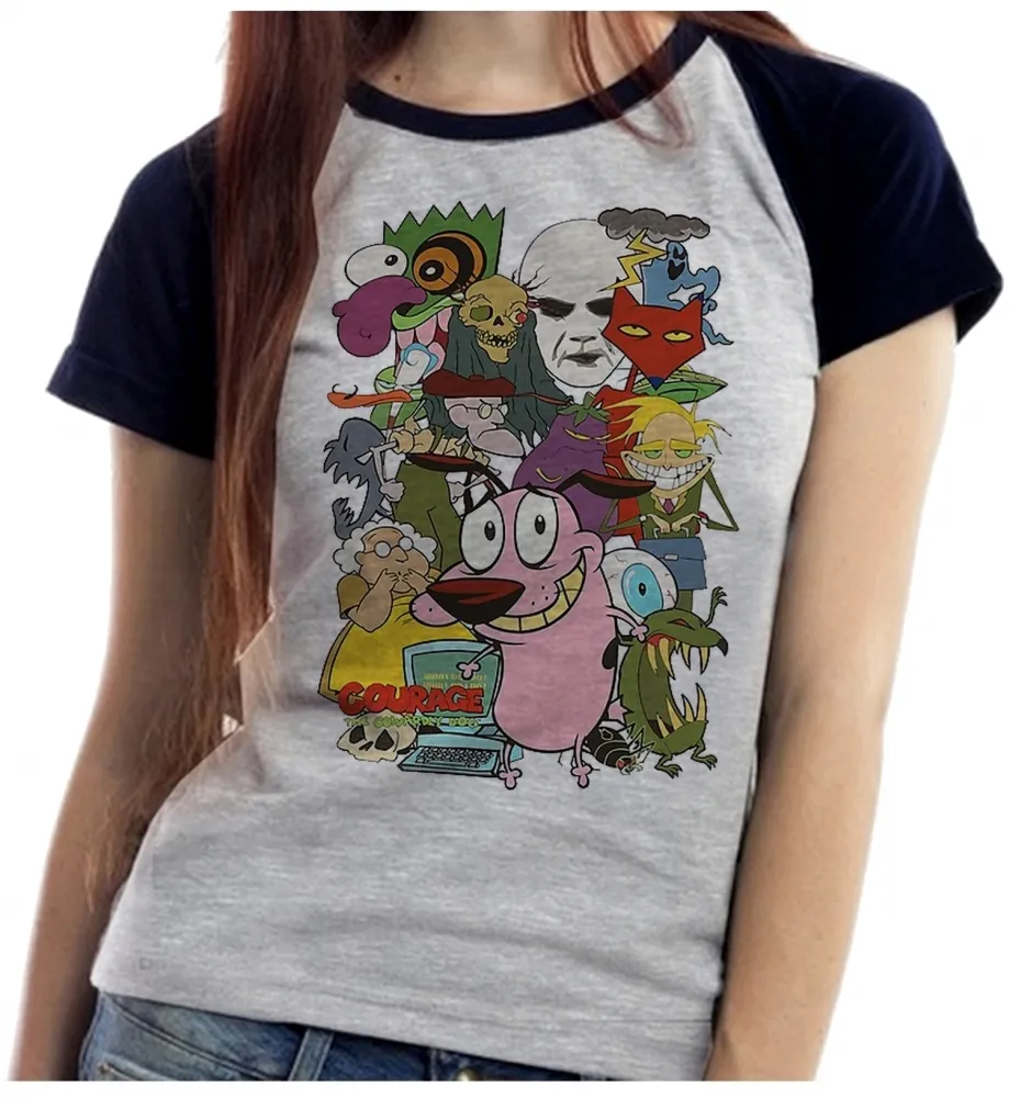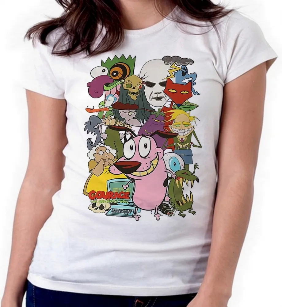 Baby look blusa feminina ou Camiseta Coragem cão covarde Vilão