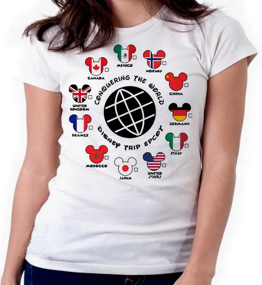 Baby look blusa feminina ou Camiseta Disney park paises mickey