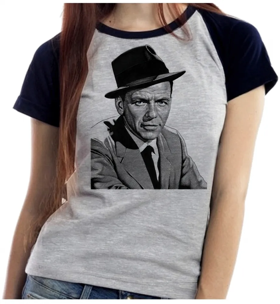 Baby look blusa feminina ou Camiseta frank Sinatra cantor chapeu