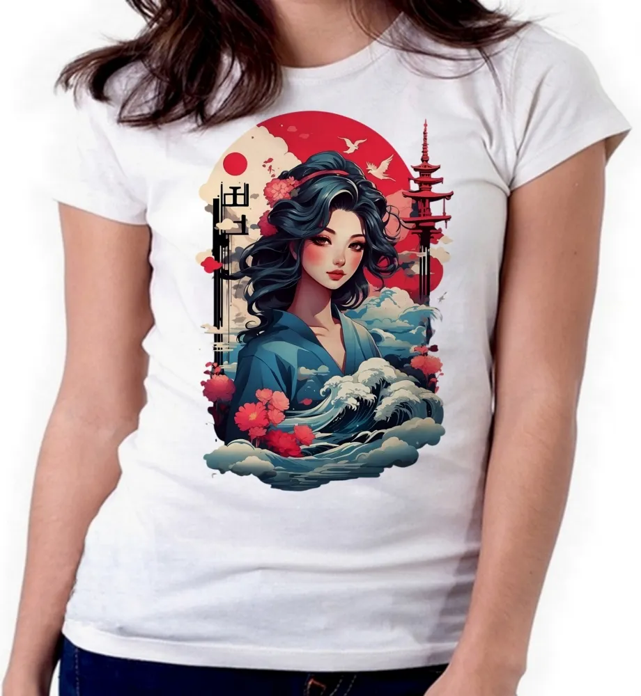 Baby look blusa feminina ou Camiseta Japonesa Japão gueixa mulher artista