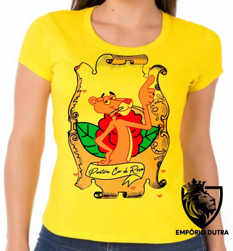 Baby look blusa feminina Pantera cor de rosa Imagem