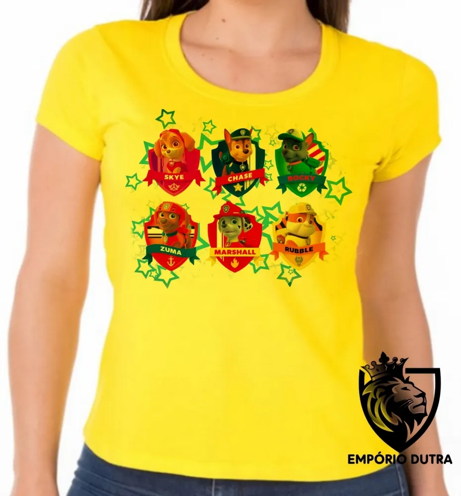 Baby look blusa feminina Patrulha Canina nomes Imagem