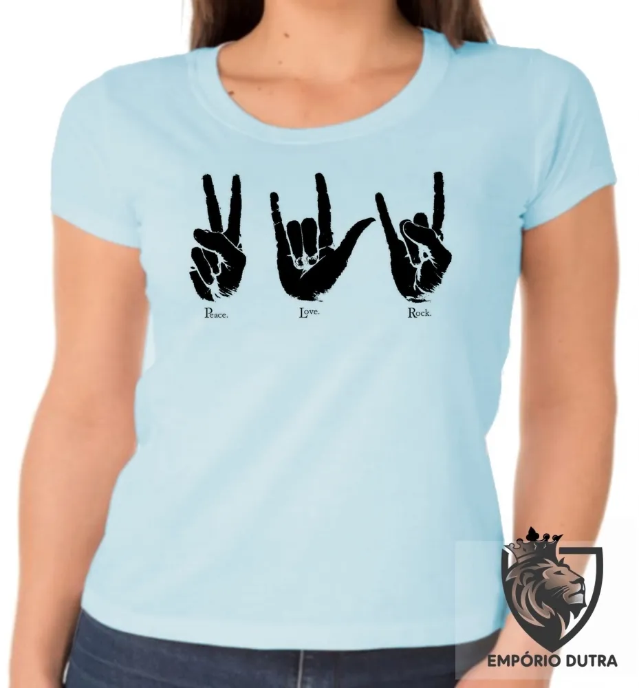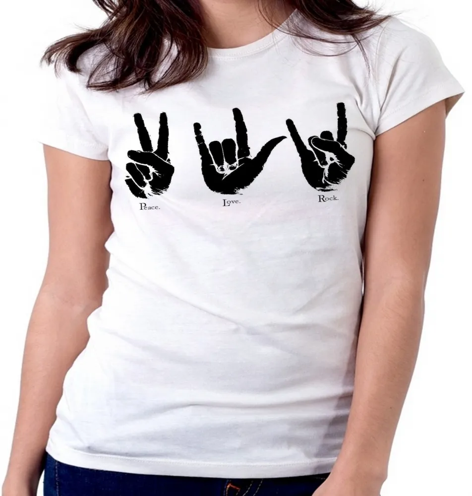 Baby look blusa Feminina Paz love rock libras linguagem sinais