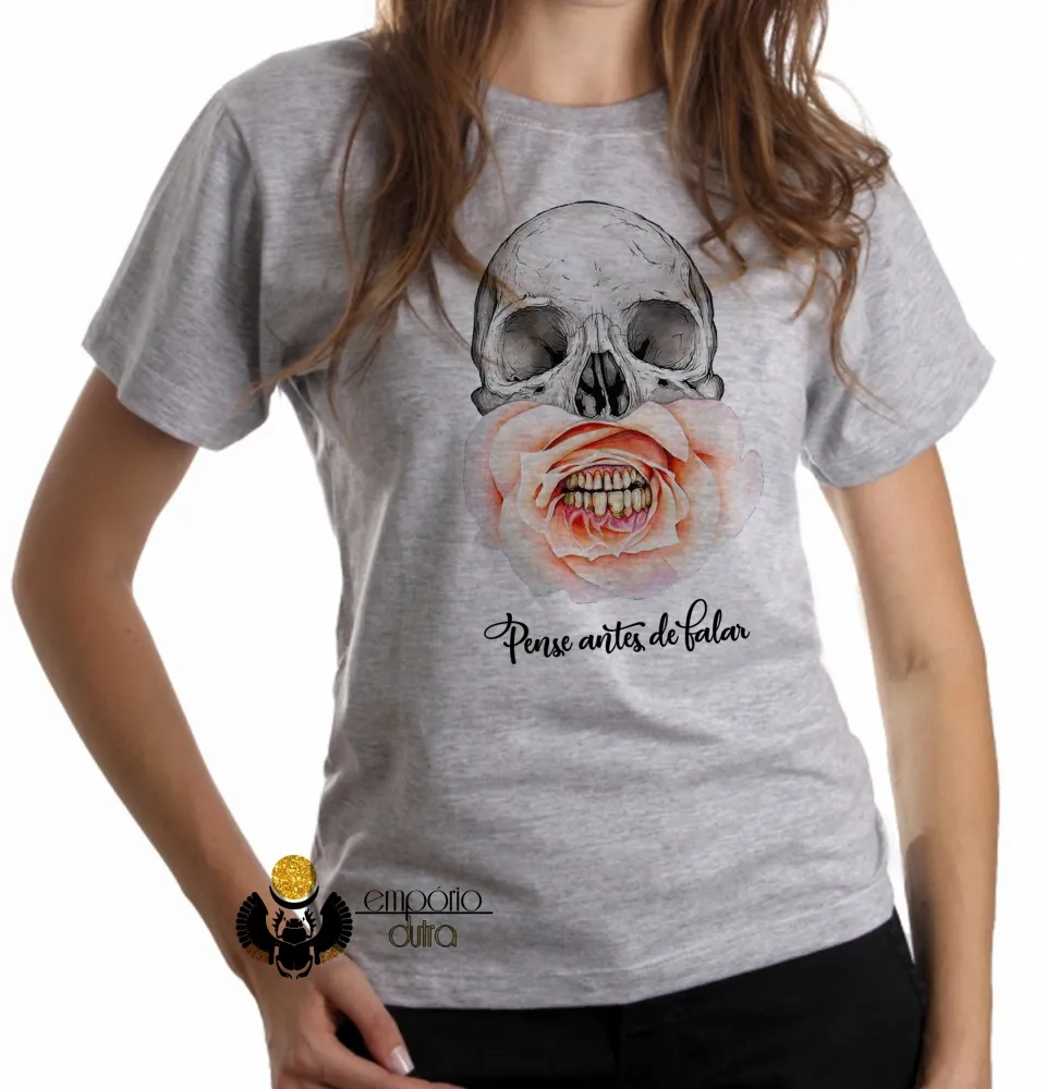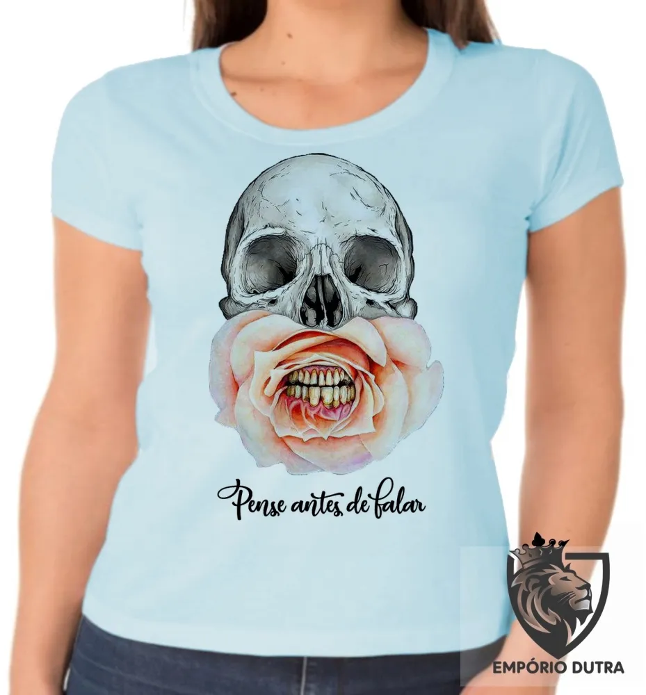 Baby look blusa feminina Pense antes de falar merda Imagem