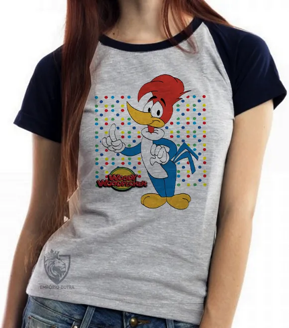 Baby look blusa feminina Pica Pau bolinhas Imagem
