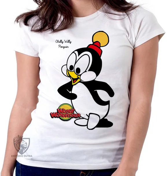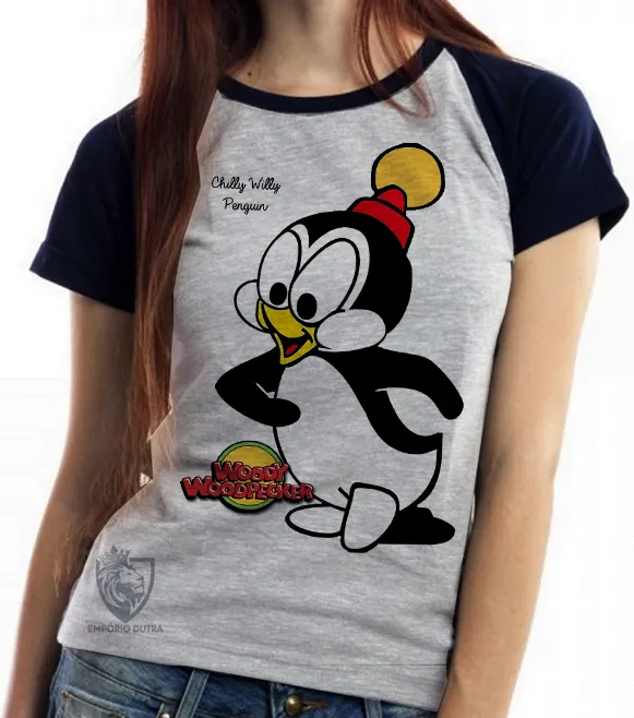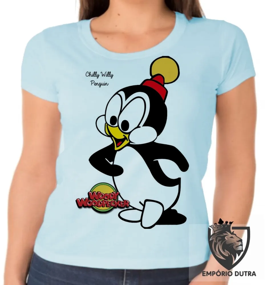 Baby look blusa feminina Pica Pau Chilly willy pinguim Imagem