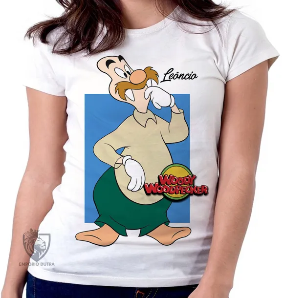 Baby look blusa feminina Pica Pau Leôncio leão Marinho