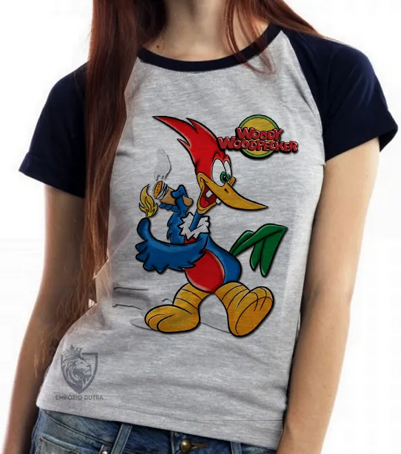 Baby look blusa feminina Pica Pau louco anos 60 Imagem