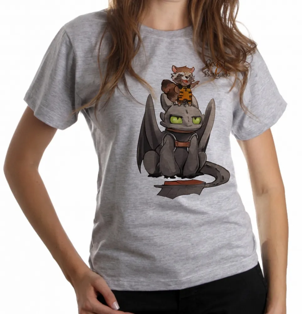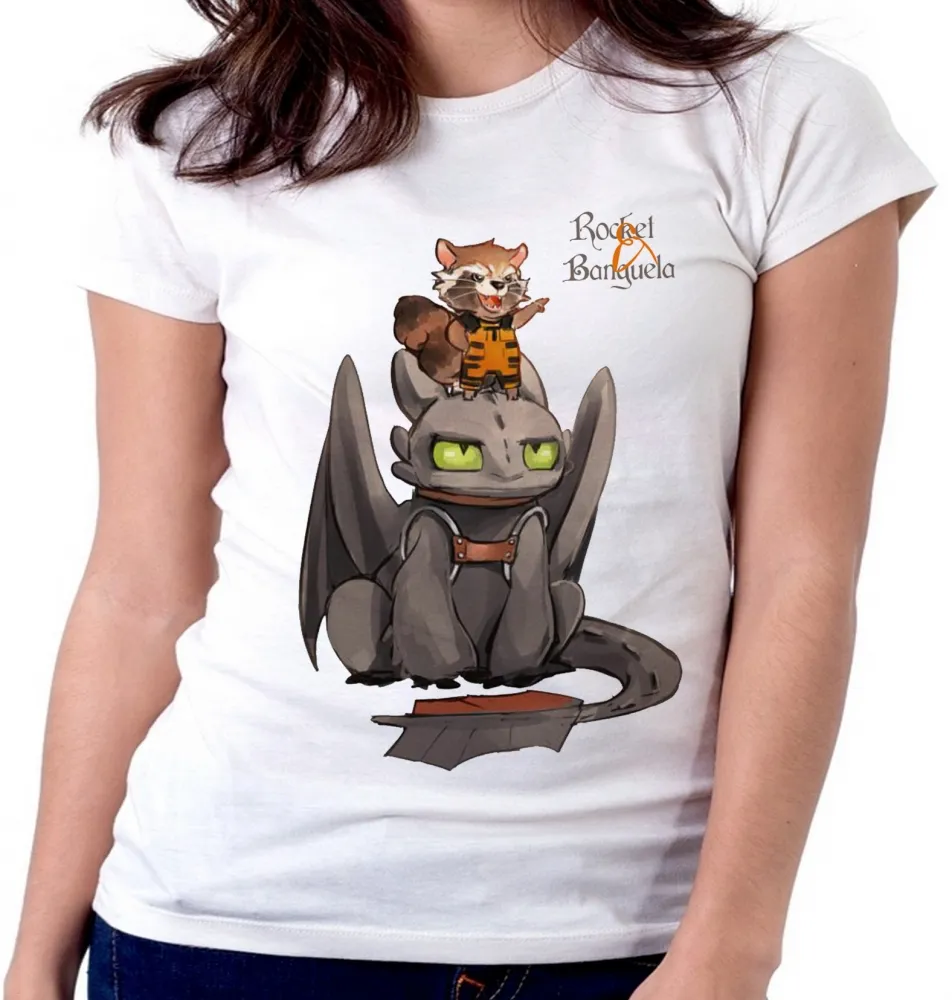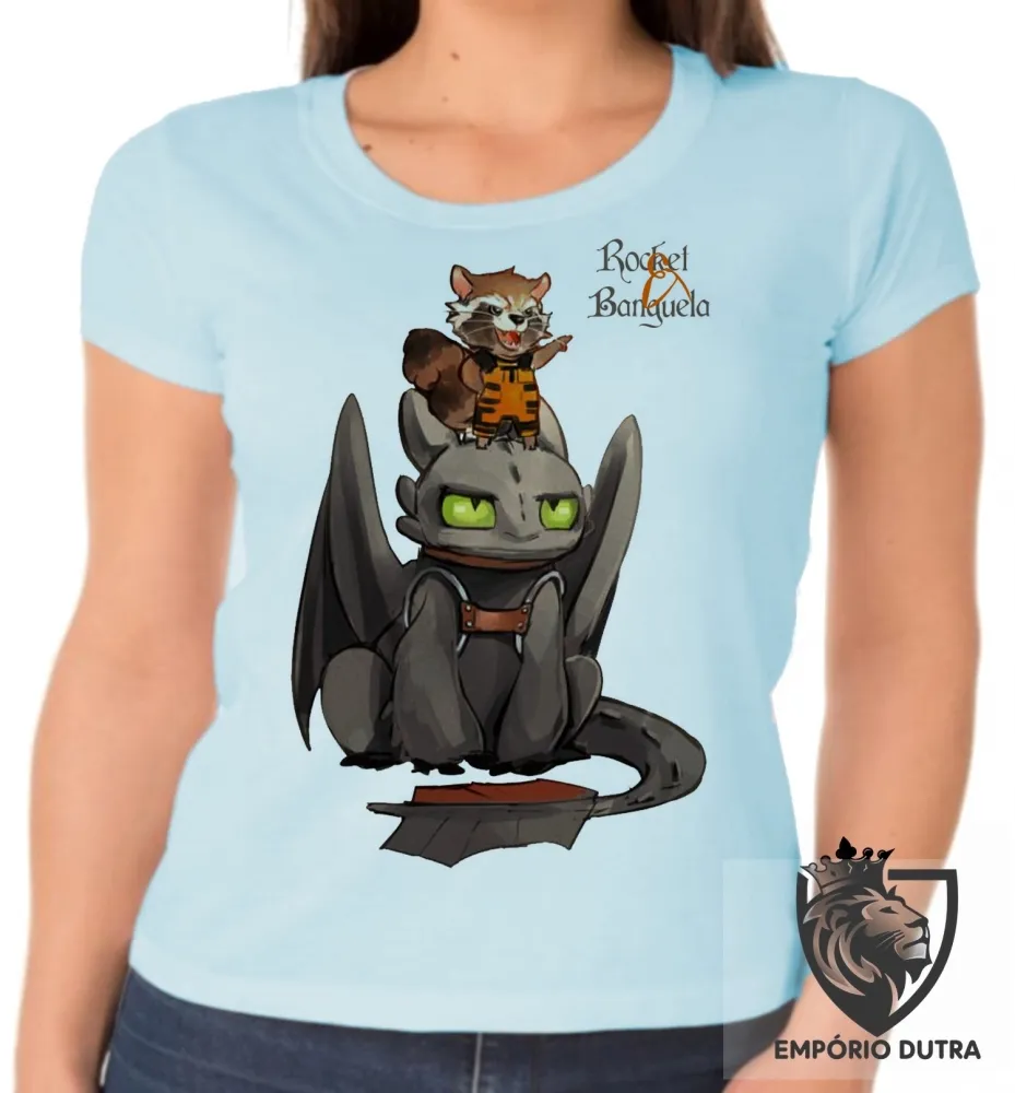 Baby look blusa feminina Rocket guardiões galaxia Banguela dragão