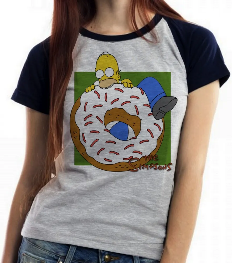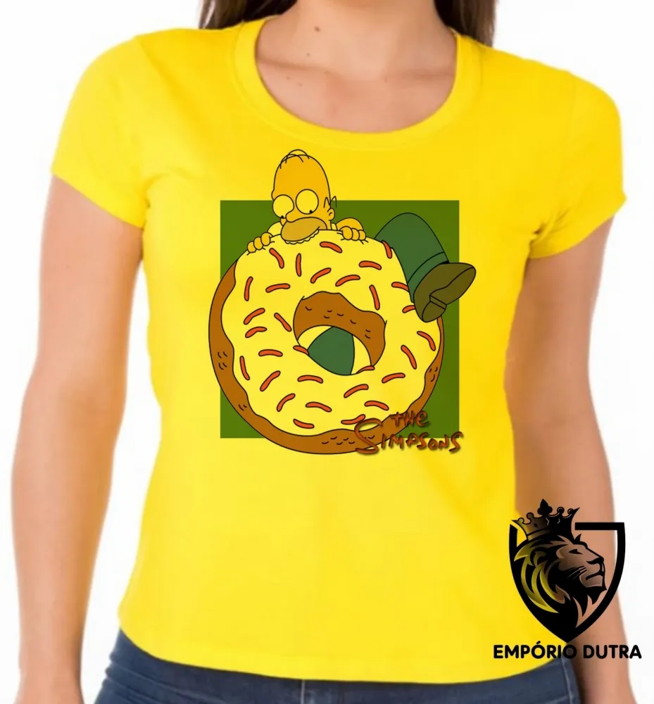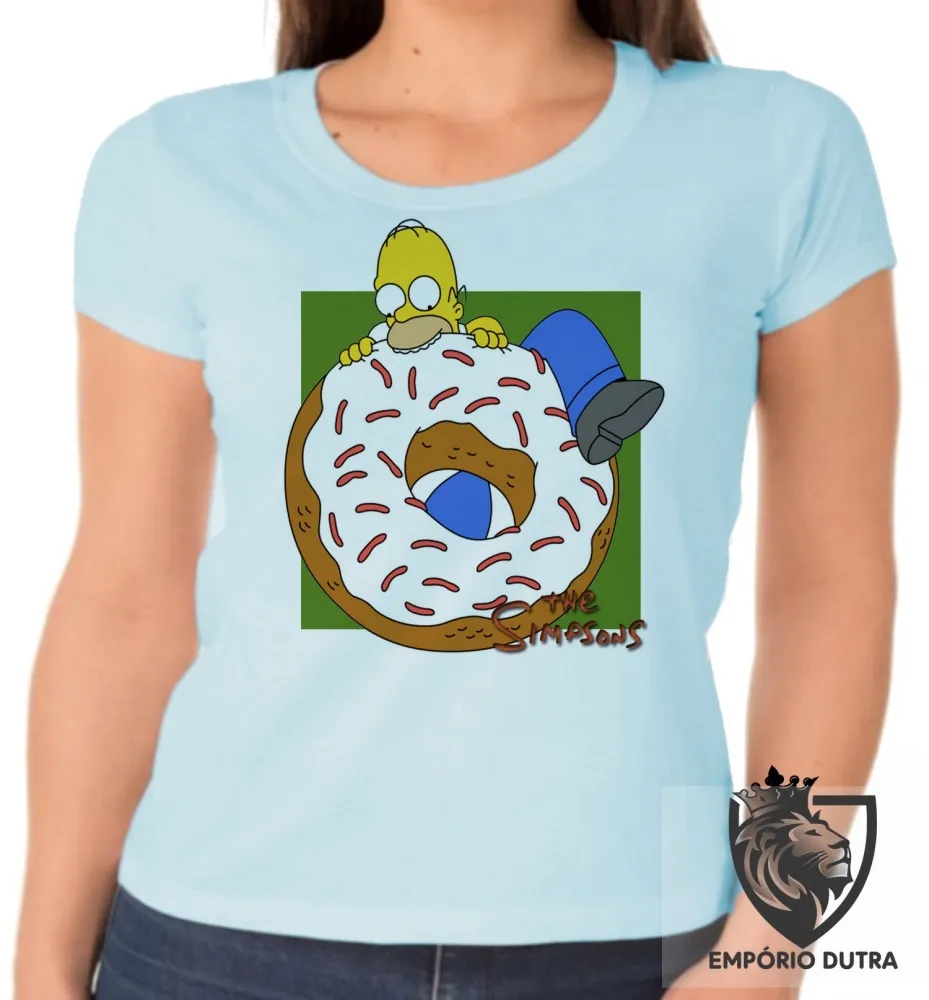 Baby look blusa feminina Simpsons Homer rosquinha morder Imagem