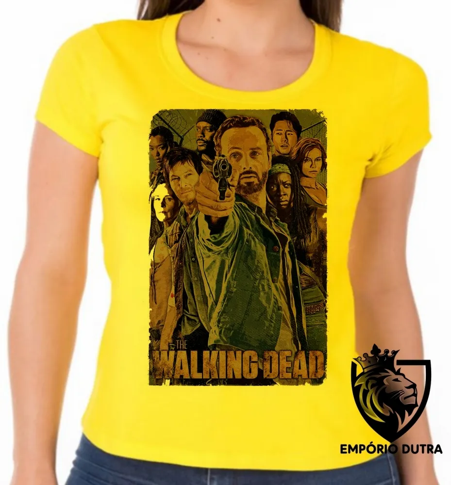 Baby look blusa Feminina The walking Dead arma apontando todos