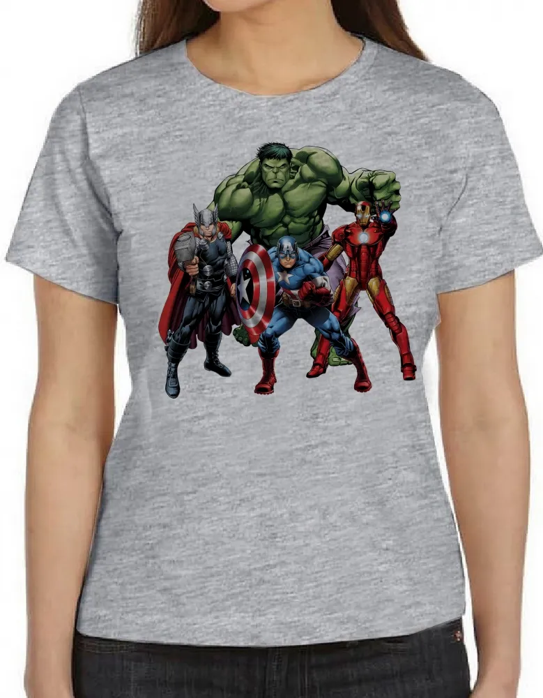 Baby look blusa feminina vingadores hulk thor capitão homen ferro