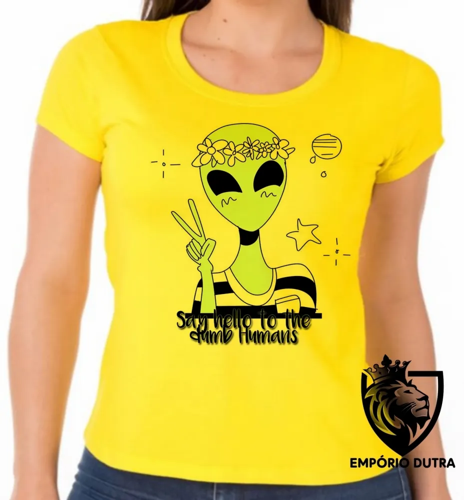 Baby look blusa feminina Alien say hello to the dumb humans